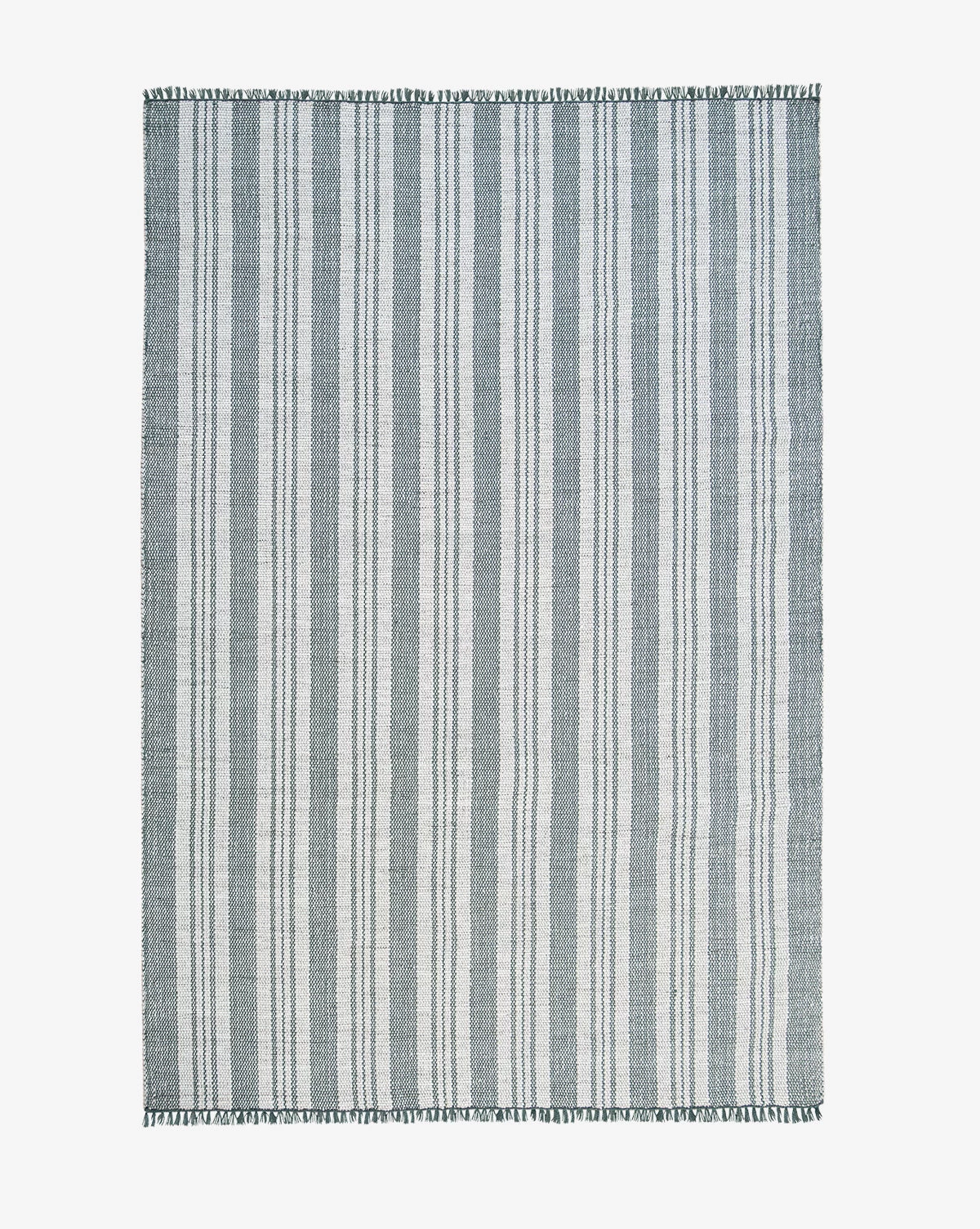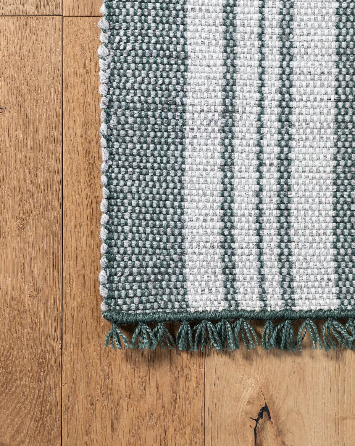 The Ahern Indoor/Outdoor Rug is designed with outdoor durability and elegant versatility in mind. Handwoven from weather-resistant materials, itâs able to withstand the outdoor elements yet remains as soft and beautiful as cotton. The green and neutral stripes are complemented by subtle fringe, perfect for high-traffic indoor areas or outdoor styling.