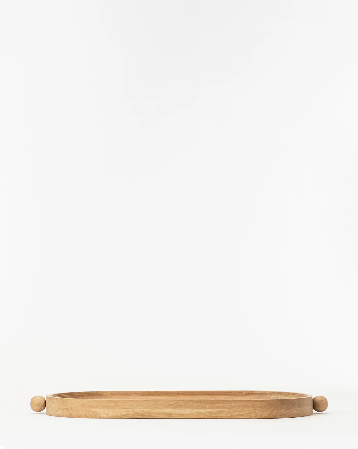 The Allard Wood Serving Tray brings detail to everyday serveware. Crafted from wood in a natural finish, this elongated, shallow tray has small handles that bring moments of detail and practicality to the pieceâs structure and design.