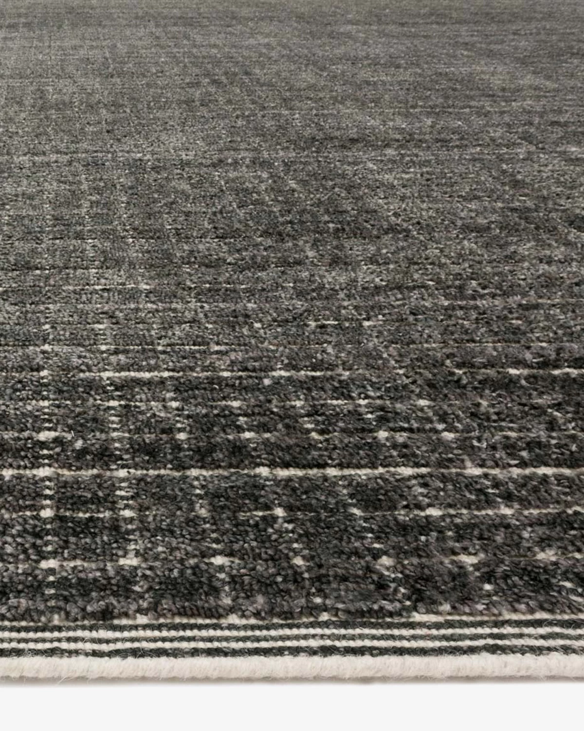 With a simple palette, the Ameglia Charcoal Wool Rug holds a remarkable level of detail from its careful construction. Hand-loomed, the wool and rayon blend creates a soft feel and durable construction, perfect for styling in the rooms of your home.