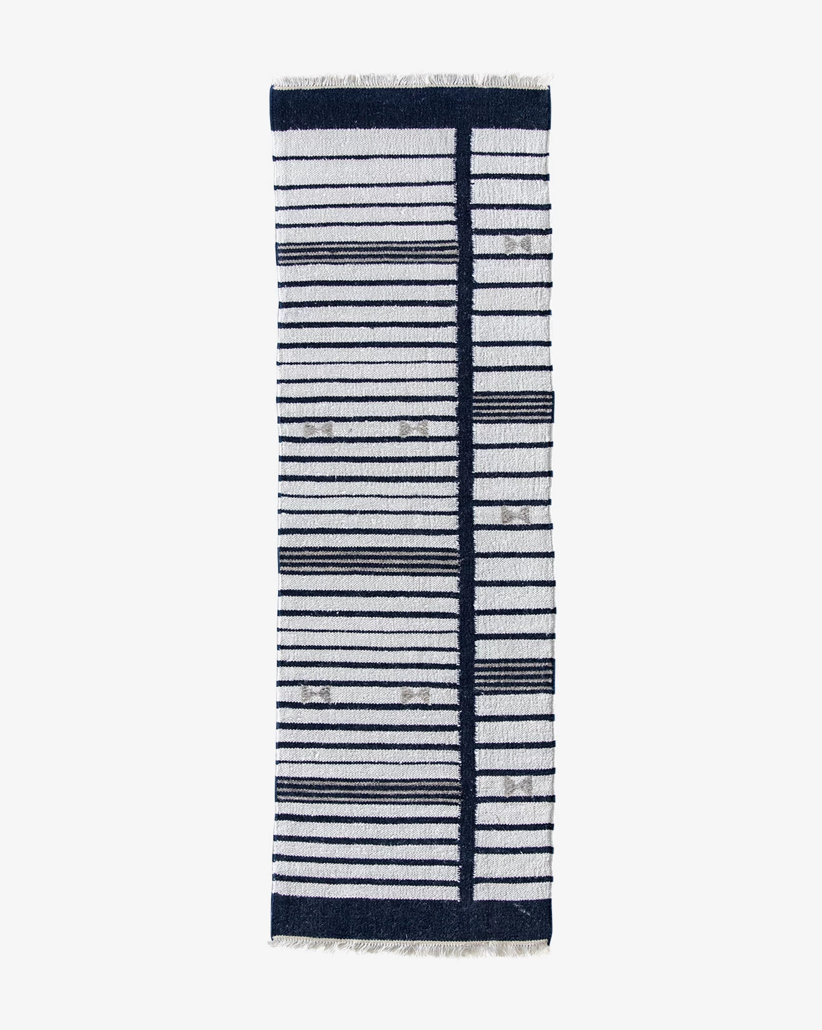 Anchoring your space with a modern feel, our Ansel Rug brings both contemporary design and visual contrast to your space with its inky blue and white striped motif. Handwoven by skilled artisans, its 100% wool construction features antimicrobial properties and withstands spills, lending durable style to any room.