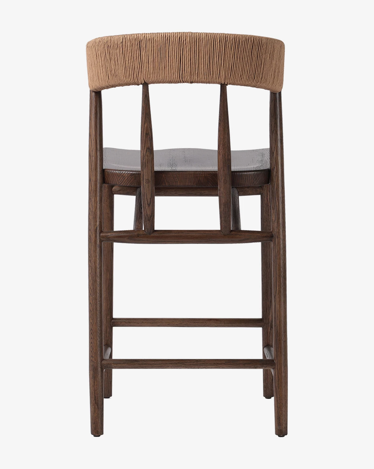 Charming and versatile, the Ardent Stool has a solid oak frame and a rounded back wrapped in natural paper rush. The bar stool balances elegance with rustic style. Styled as a standalone vignette or in a set against a kitchen bar, the stool seamlessly makes an elevated statement in your space.