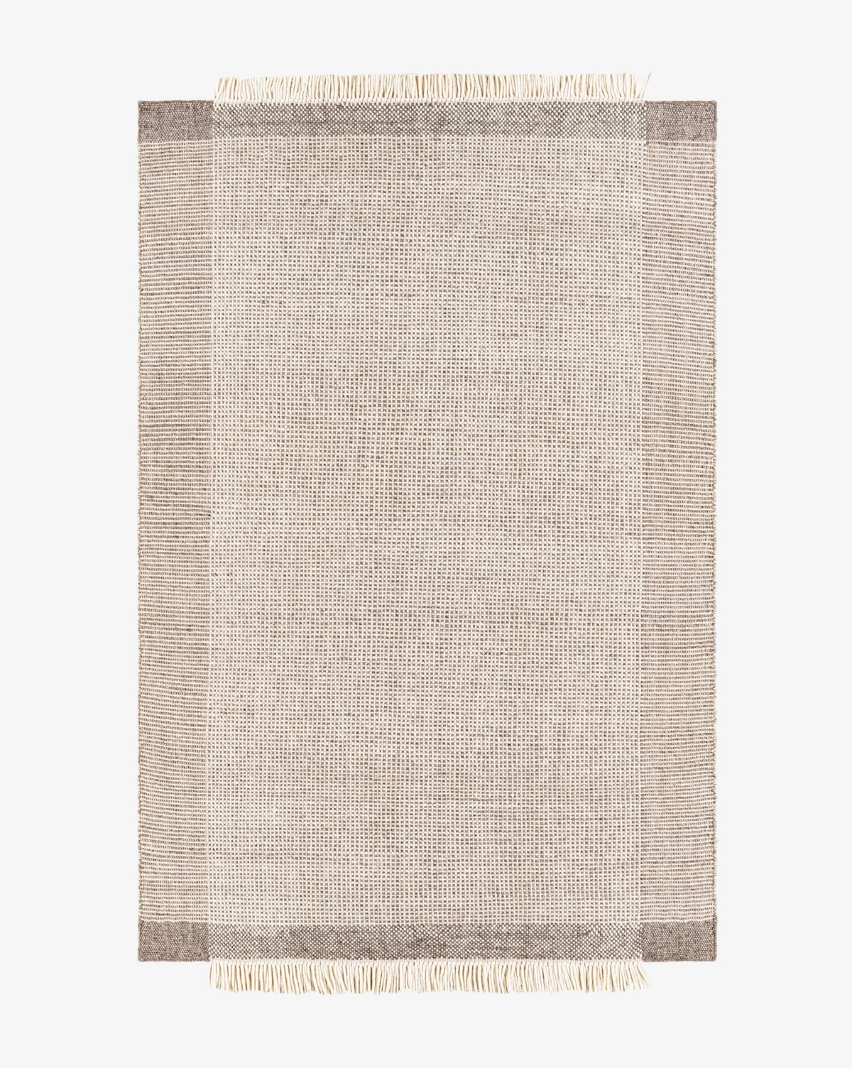 Hand woven in 100% wool, the Argo Handwoven Wool Rug uses a palette of softly contrasting beige, cream, and gray to develop dimension and interest. Its subtle pattern is complemented with purposefully placed fringe that extends partway along the ends of the rug. This unique feature allows the Argo Wool Rug to give personality and eccentricity to your floors and comes in a variety of sizes.Â