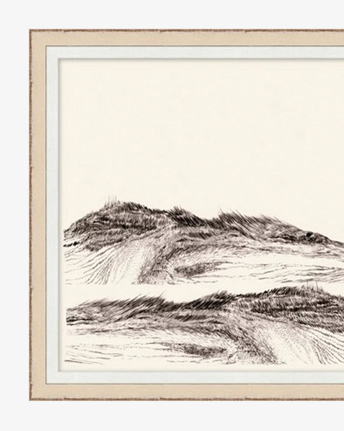 We love a simple matte sketch that lets the scenery speak for itself. This piece renders a shoreline with intricate details that capture the peaceful moments felt at the shore.