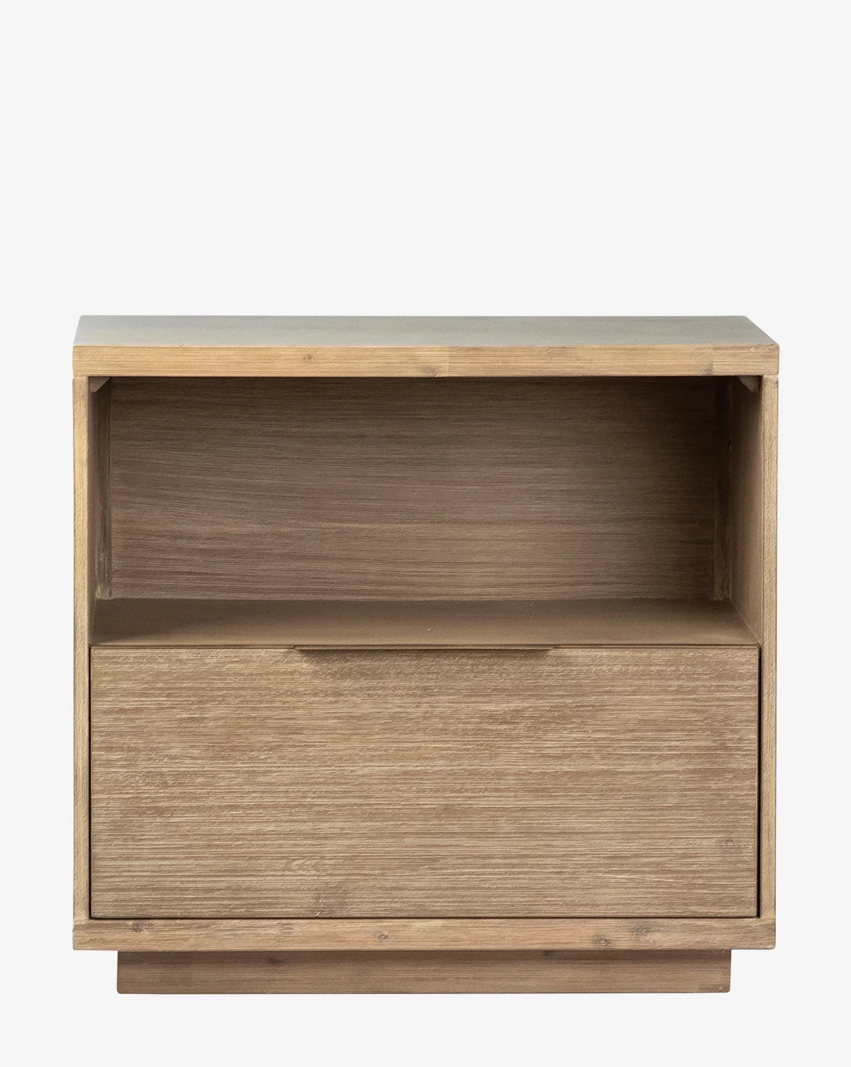 Crafted from acacia wood in a light wash finish, the Audrina Nightstand adds plenty of storage with its minimalist design. Softening your space with an open shelf on top of the subtle drawer, this nightstand complements your bedroom decor with its simple, contemporary form.