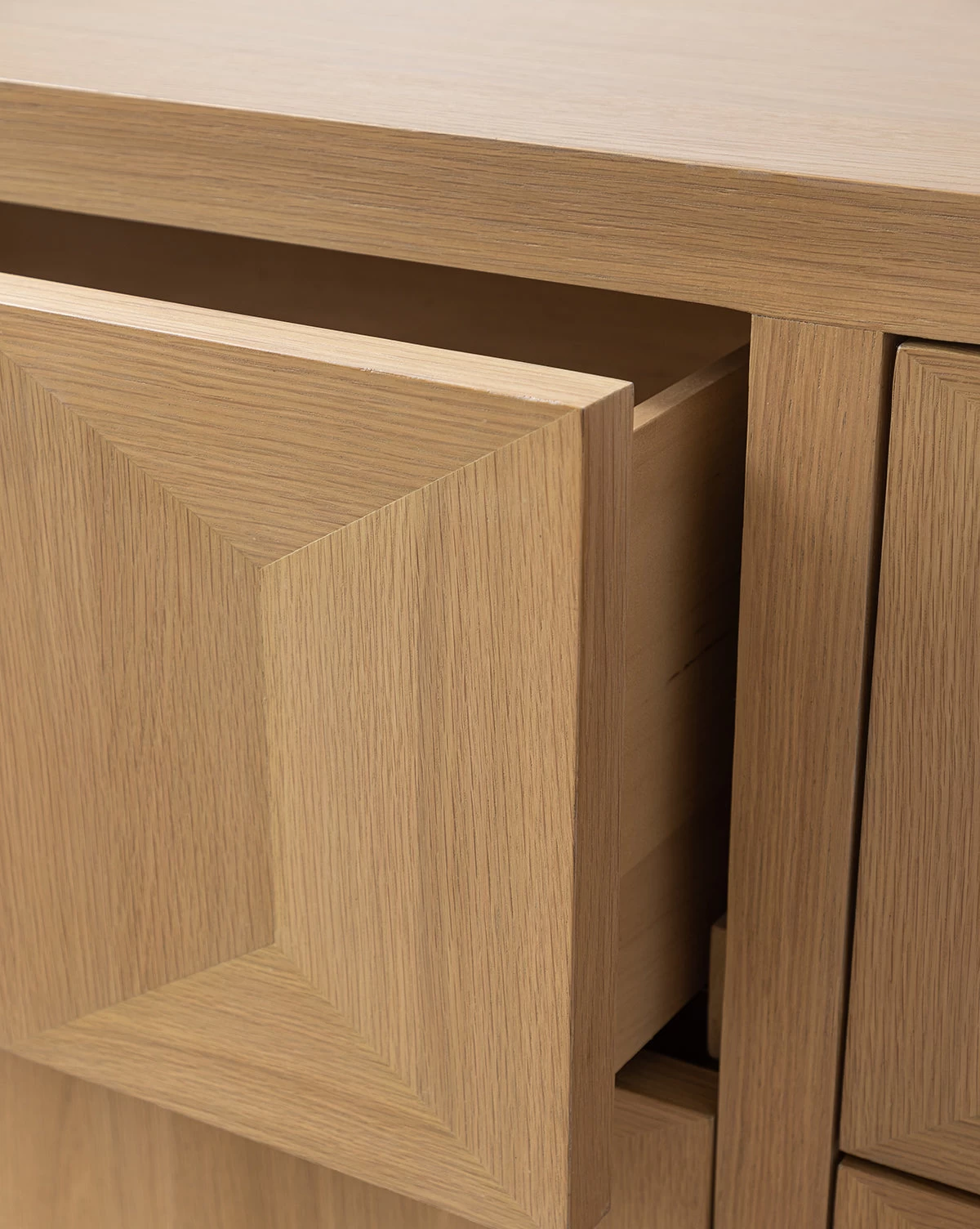 With a blend of geometric and organic motifs, our Beacon 6-Drawer Dresser takes a streamlined approach to visual intricacy. The white oak dresser includes spacious storage that makes it as functional as it is beautiful. In a neutral tone, the dresser is a versatile modern piece for your bedroom styling.