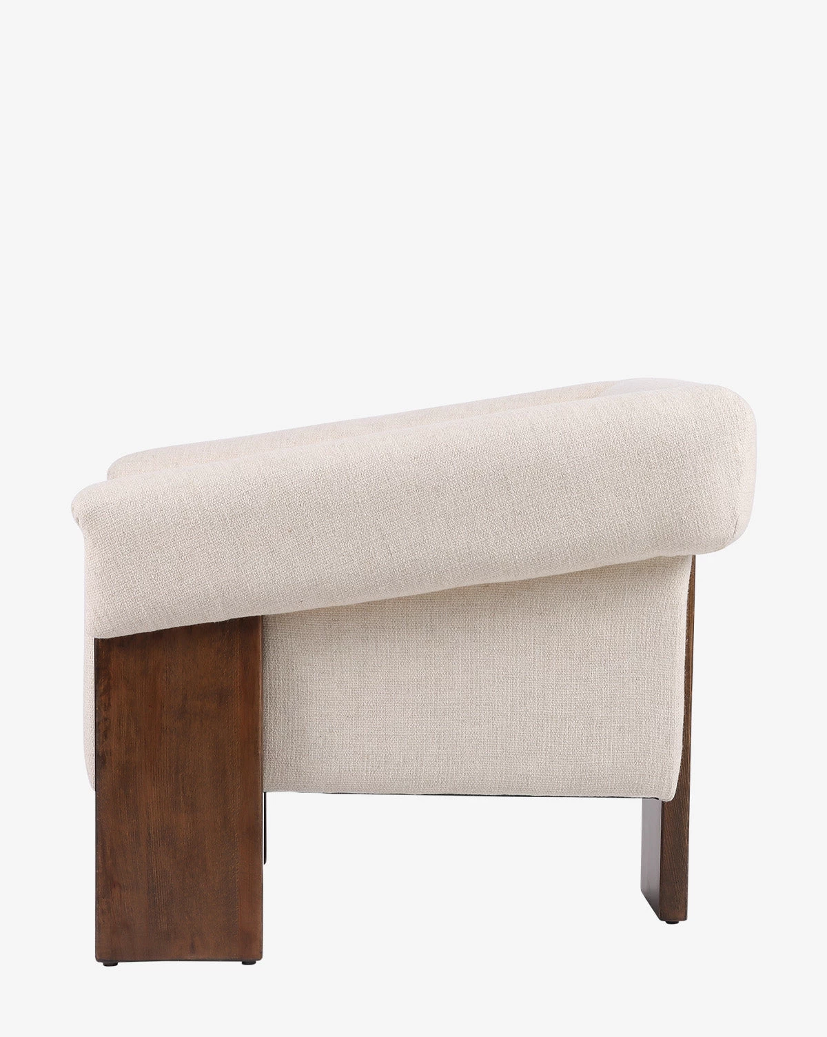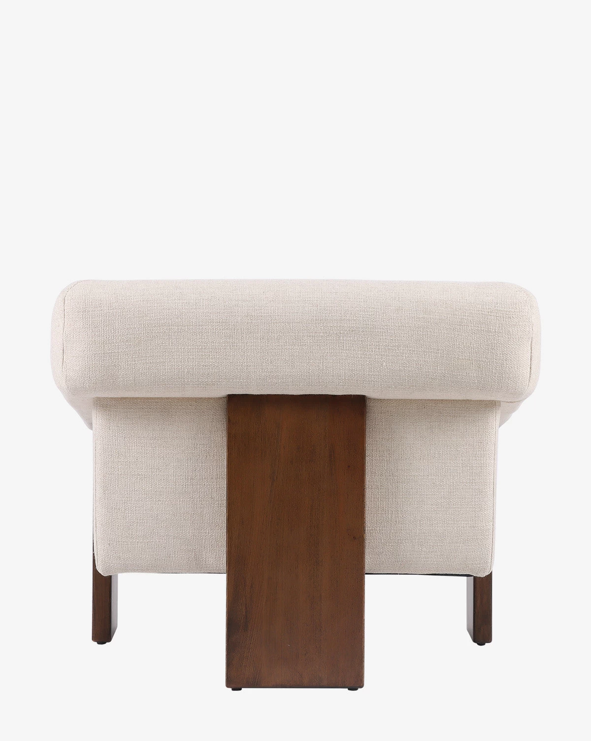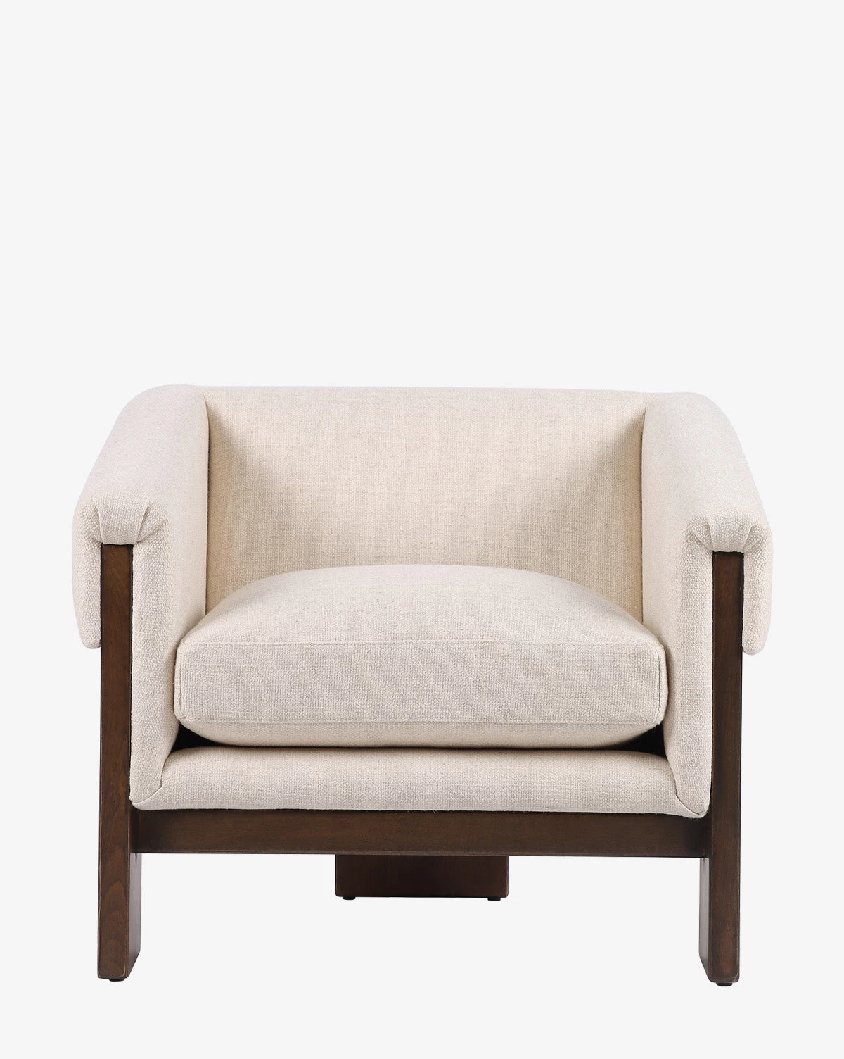 Refined yet inviting, the Bethia Lounge Chair features wide plank legs made of solid beech that form a structural tripod. Upholstered in a cream performance fabric, the chairâs wraparound arms and plush seat cushion provide sleek comfort in your space.