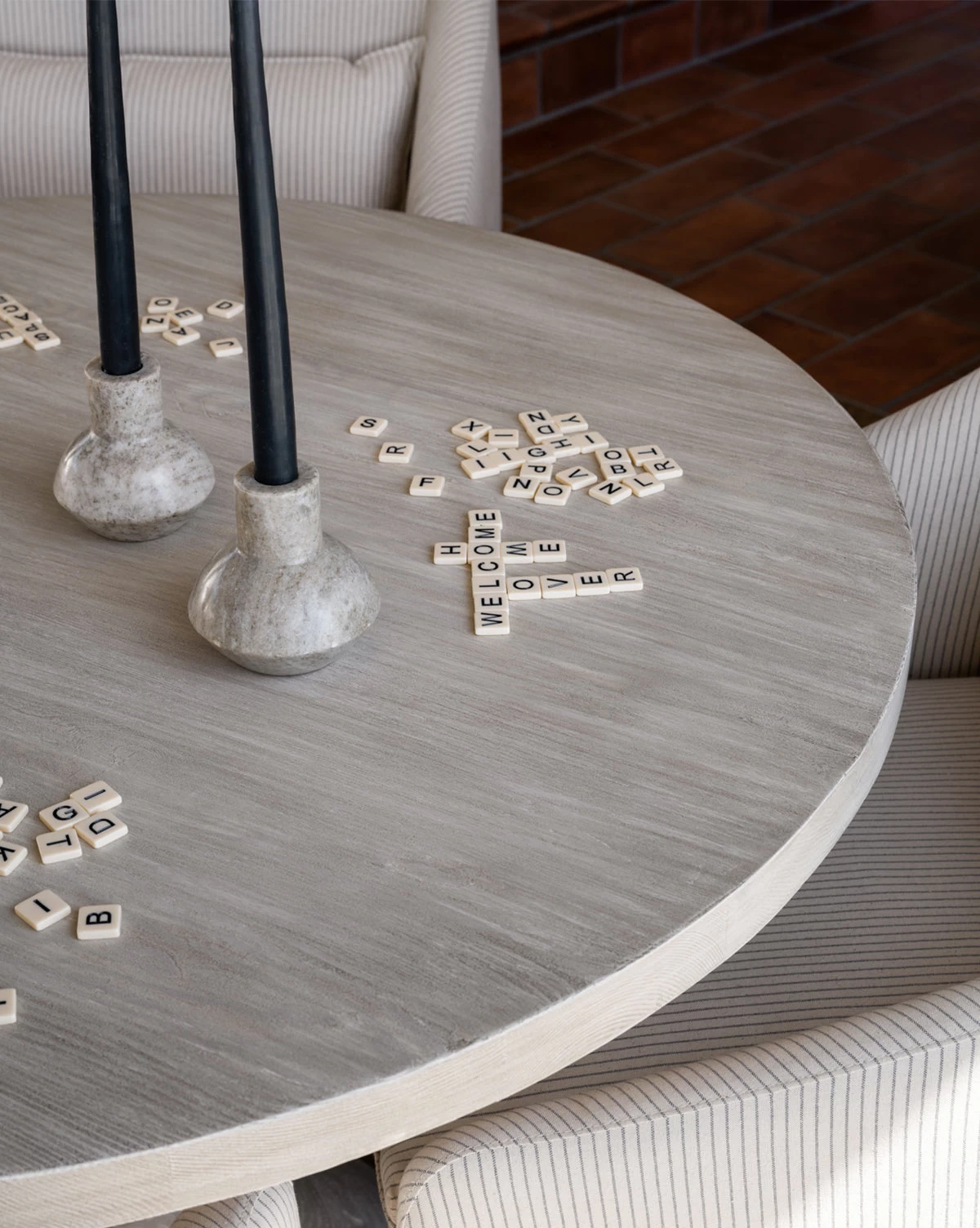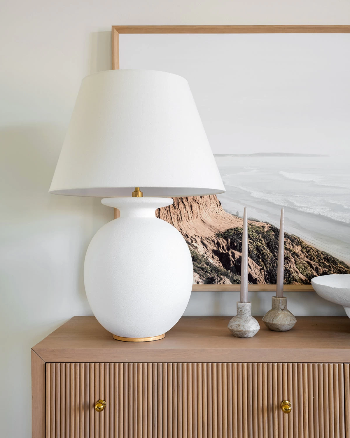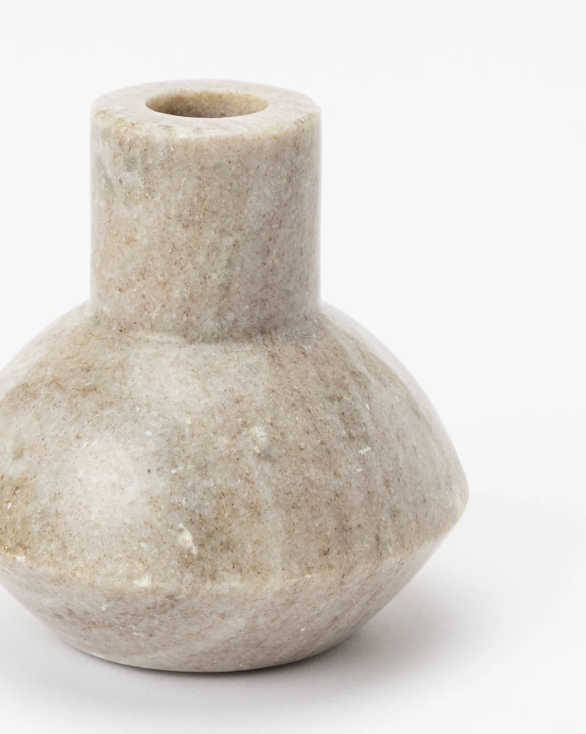 Function follows form in the Marble Shaped Taper Holder. Its softly tapered shape is crafted from marble, giving visual weight to this simple yet elegant design. Beige marbling swirls through the piece to create movement across its softly rounded surface, making it a beautiful complement to the tall, slender candles it holds.