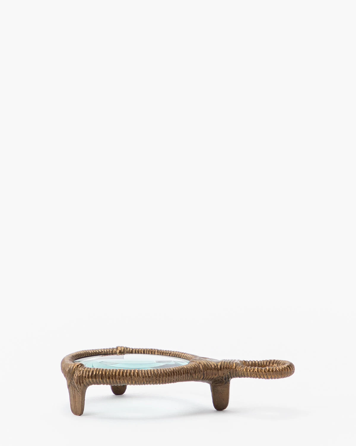 With an abundance of antique character, the Brass Enrouler gives maturity and dimension to built-ins and decorative vignettes. Crafted from brass, this three-footed design is fitted with a glass center and metal loop extending off the end, adding an element of aged style to the space.
