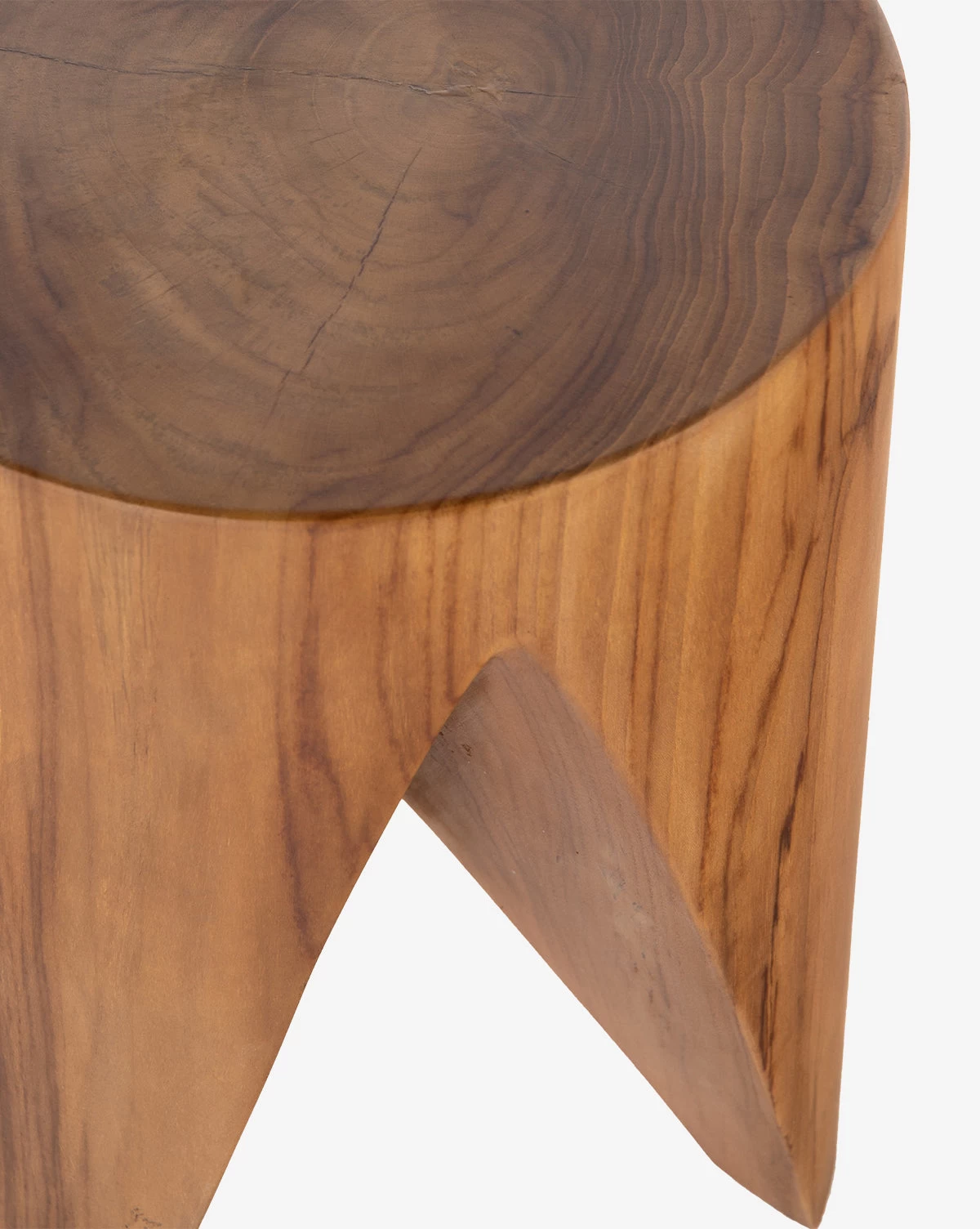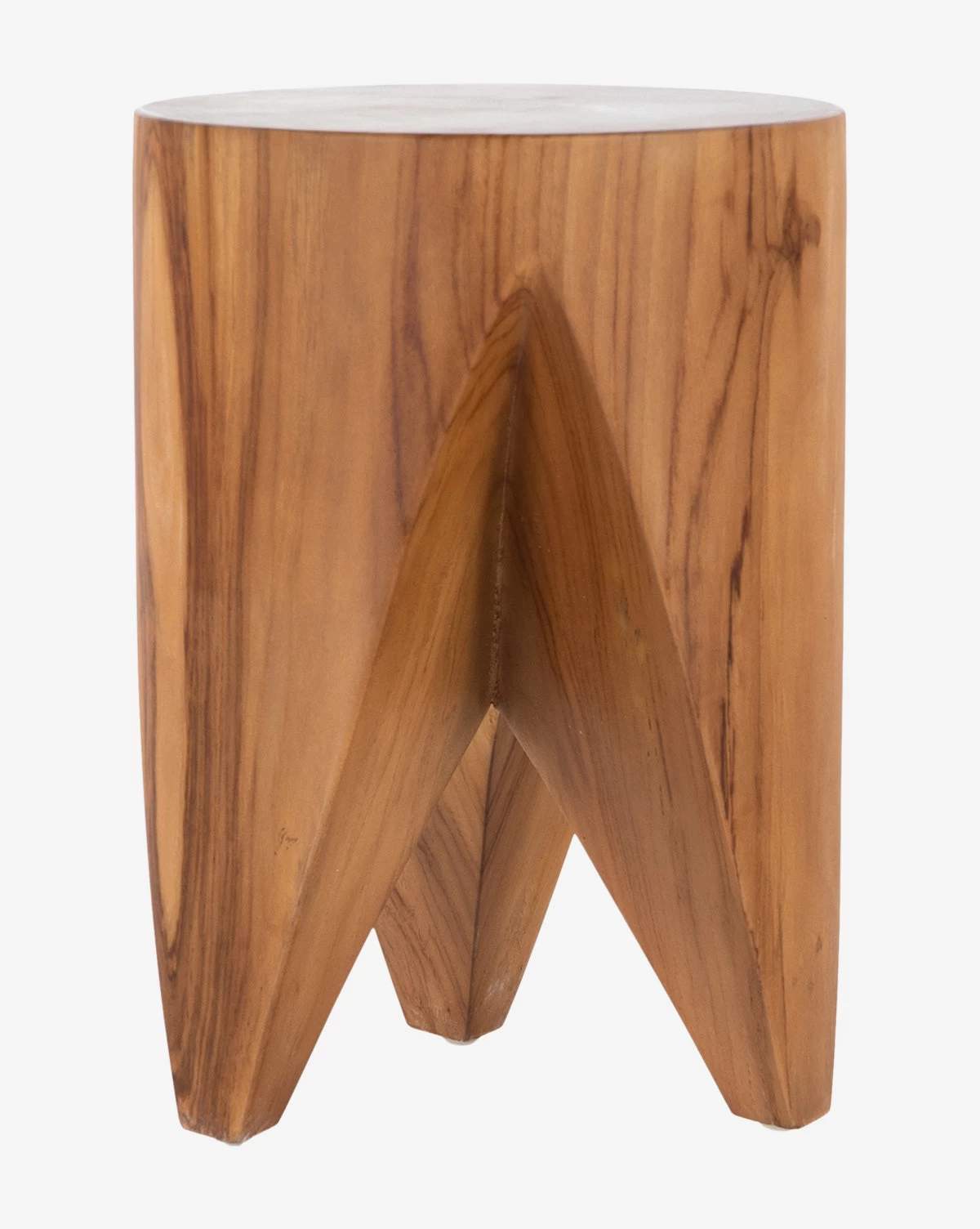 The Brena Outdoor End Table has an organic feel that celebrates its sculptural form. With a three-leg design and three available finishes, every table exaggerates its wood grain and texture for a touch of organic design in a modern take on natural material.