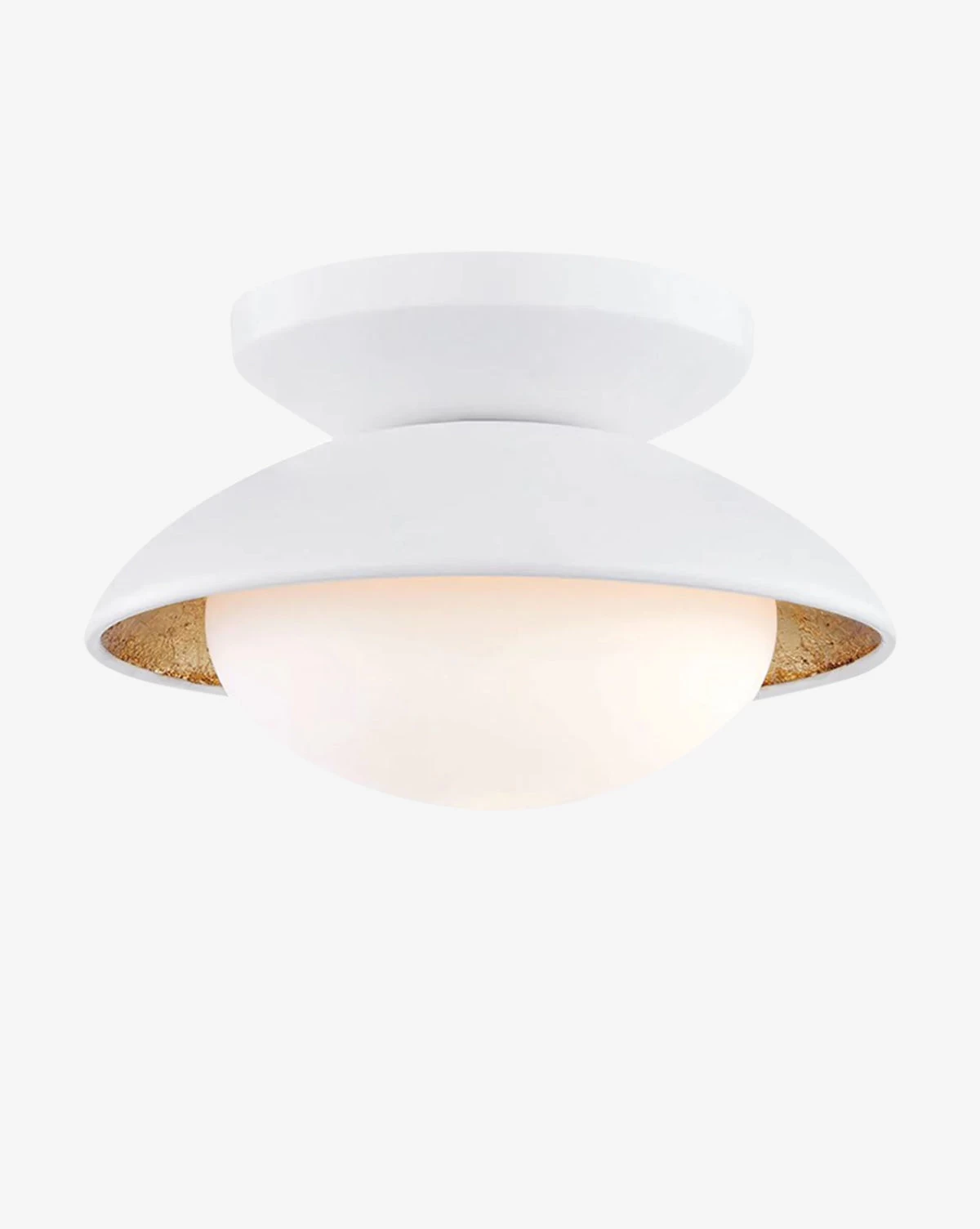 With a modern bowl shape, the Cadence Flush Mount brings a stunning display of art meets lighting from the textured outer finish to the inner gold leafed detail. Finished in either matte black or white, this fixture beautifully reflects light while bringing an eye-catching moment wherever itâs placed.