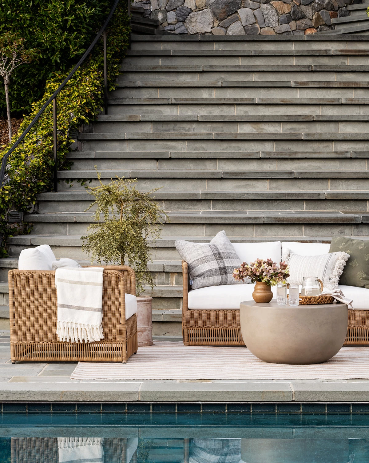 Crafted from fiber cement, the Caine Outdoor Coffee Table is an all-weather piece with a minimal yet impactful look. Hollowed in the center to create portability, our high-quality fiber cement has the look and feel of concrete, bringing a modern touch to your outdoor lounge design.