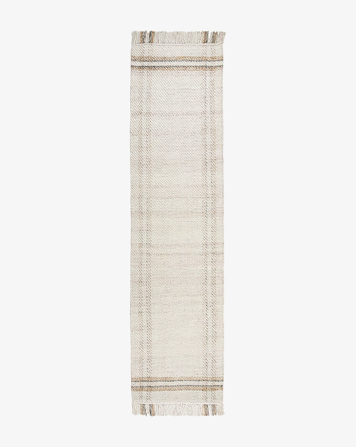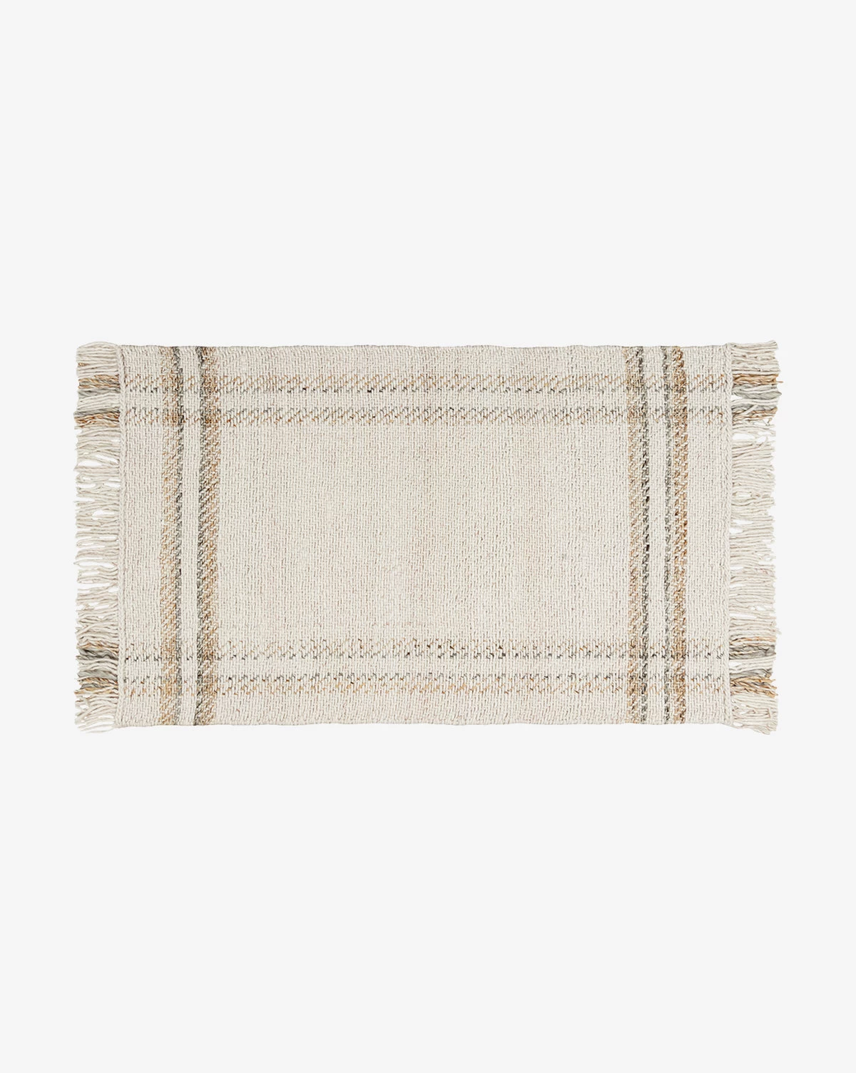 In a hand-woven design, the Callahan Handwoven Indoor/Outdoor Rug anchors any room and gives warmth to your designs. Its neutral beige and gray palette lends versatility, and its stripes have subtle visual interest. Finished with long, multi-colored fringe, the Callahan Rug has a playfully casual look that gives a relaxed feel to your space.