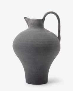 With a dramatic form, the Charcoal Terracotta Jug brings a rich, charcoal hue to your decor. Handmade and textural, the steep handle and wide body of the jug make a powerful and timeless statement in your space.