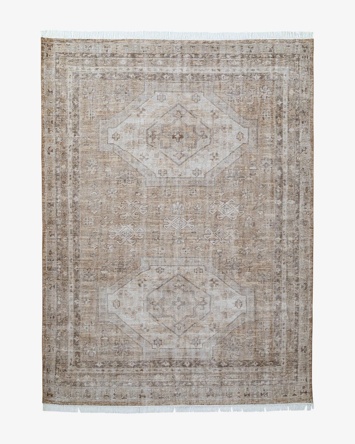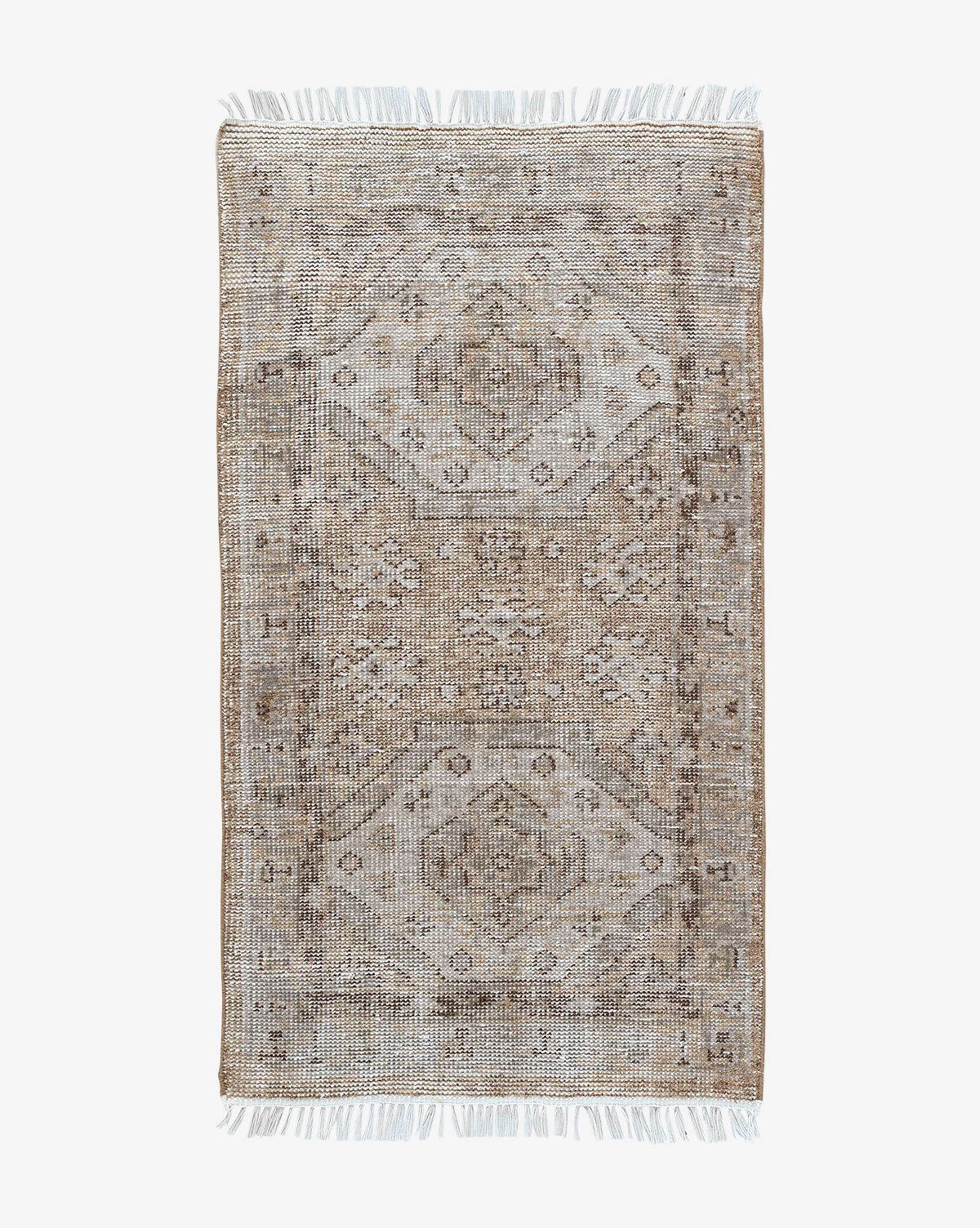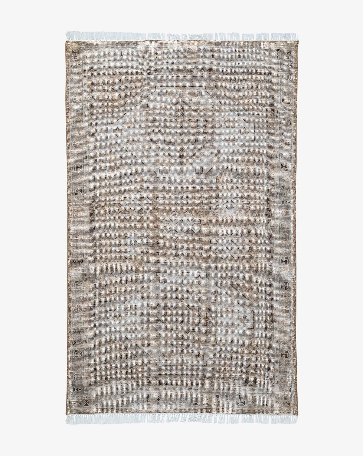 In a traditional style, the Charlot Hand-Knotted Rug has a muted intricate pattern that gives it a vintage feel. The rug is designed to last, made from hand-knotted polyester by skilled artisans. With its short white fringe, the rug is subtly textural and will seamlessly suit your decor wherever it is placed.