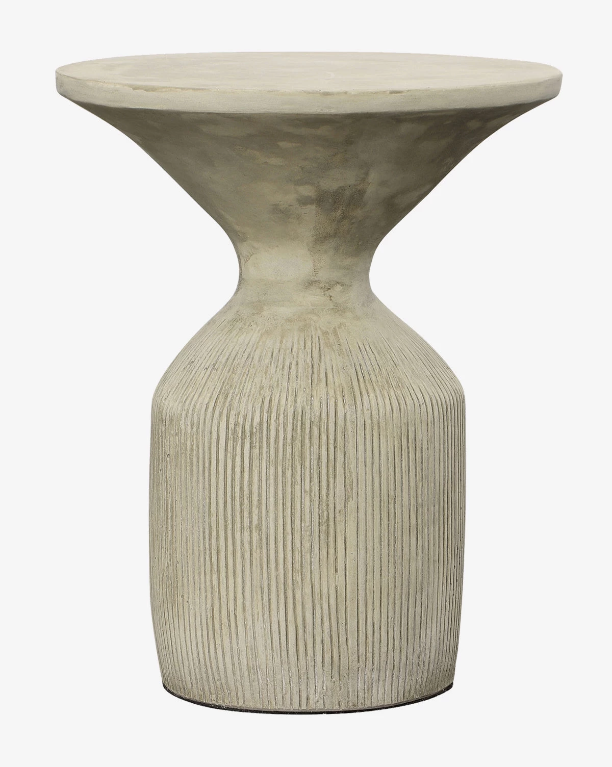 The Colin Side Table uses its sculptural design and grooved texture to add visual interest wherever itâs placed. Made from a gray-finished lightweight concrete, this accent table makes a bold yet nuanced statement when styled beside a sofa or lounge chair.