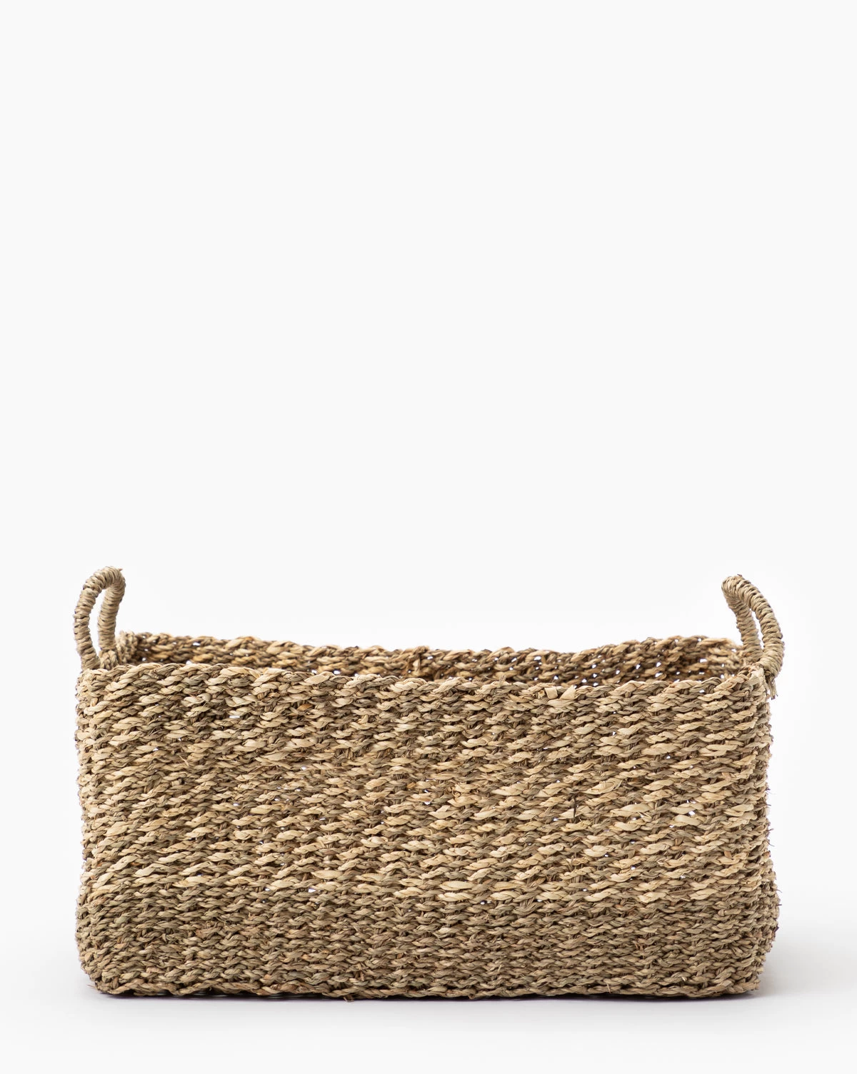 With a natural look and feel, the Cordova Basket brings extra storage to your space with its handled, rectangular form. Styled in pairs under your console or in your built-ins, this basket adds the perfect amount of both dimension and texture with its woven grass form.