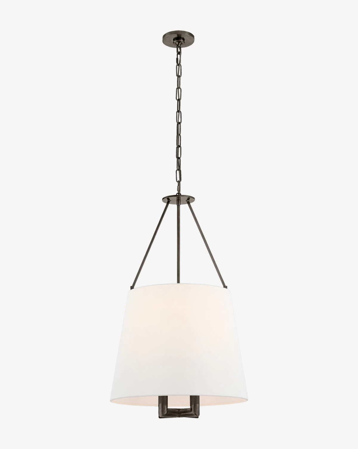 Elegant and geometric, the Dalston Hanging Shade boasts thoughtful craftsmanship with its subtle details. The brass structure is complemented by a linen paper shade, bringing a thoughtful mix of materials and warm light to your space.