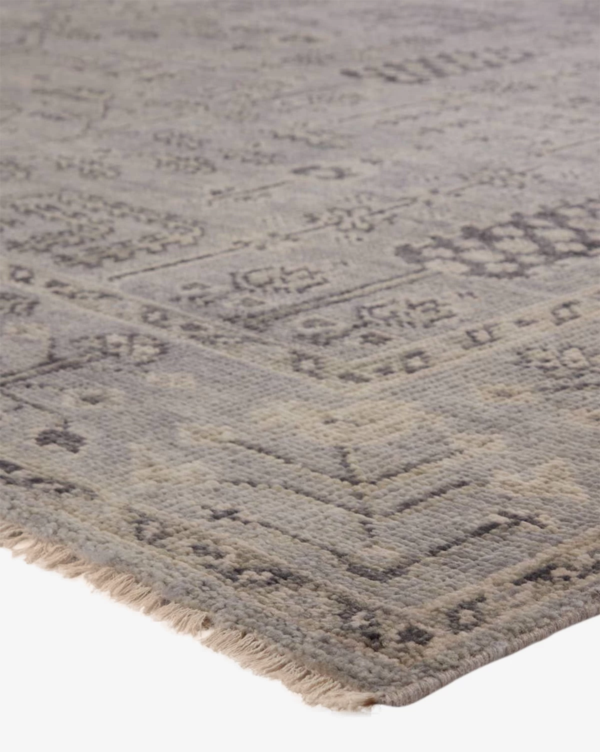 ï»żBoasting an aged, sun worn feel, the Elmont Hand-Knotted Wool Rug uses vintage motifs and a tonal palette to create a transitional statement that grounds your space. With an intricate pattern hand-knotted in wool, this artisan rug is soft and durable with details that accentuate its distressed, contemporary aesthetic. Â