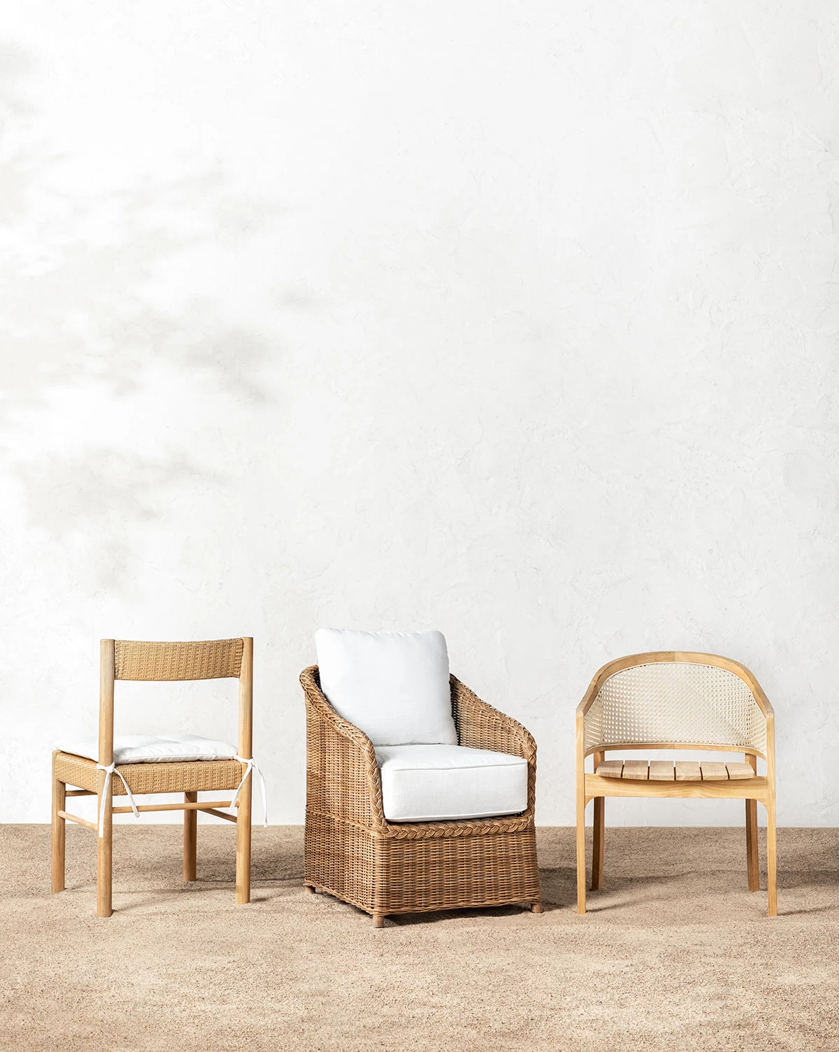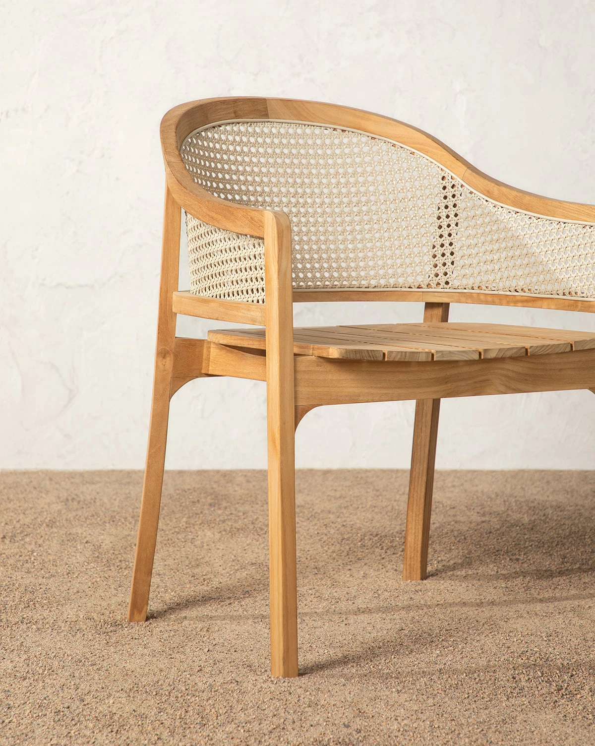 Designed with high-quality teak wood and high-grade poly wicker, the Elowyn Outdoor Dining Chair is an all-weather dining piece created to be both durable and beautiful. With stunning wicker caning set in windows of teak wood, this piece has an organic, coastal feel that will stand the test of time.