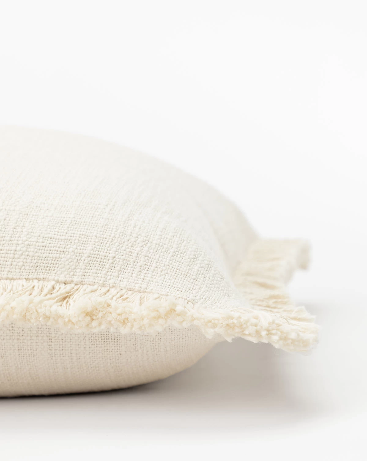 A playful take on throw pillows, the Emiliana Fringe Pillow Cover has fringe on each side. Made from 100% cotton, this pillow is incredibly soft, and its subtle texture lends interest to textile vignettes on couches and beds alike.