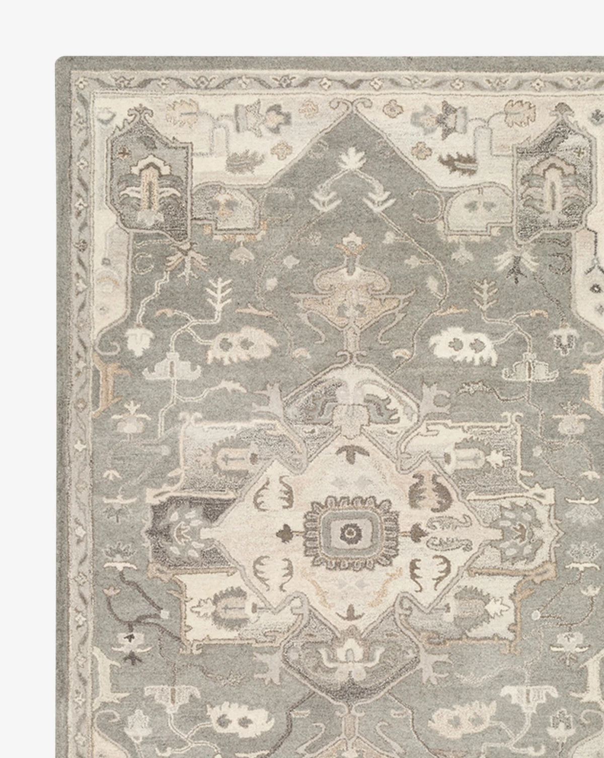 Hand-tufted in India, the Eugene Rug shows excellence in quality and design. Woven with an updated traditional pattern, its neutral palette lends versatility and serenity to your home.