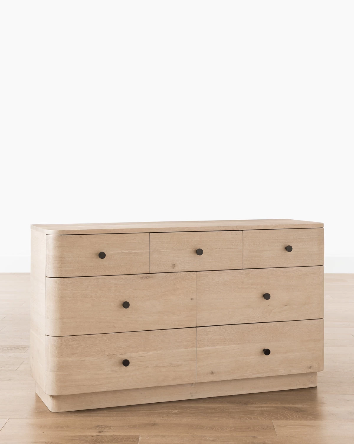 Inspired by traditional cabinetry and given a timeless update, the Longhurst Dresser draws the eye with its smooth, curved drawer fronts. Crafted from Oak wood, this casually approachable design is finished with simple round pulls, lending a unique moment of visual contrast.