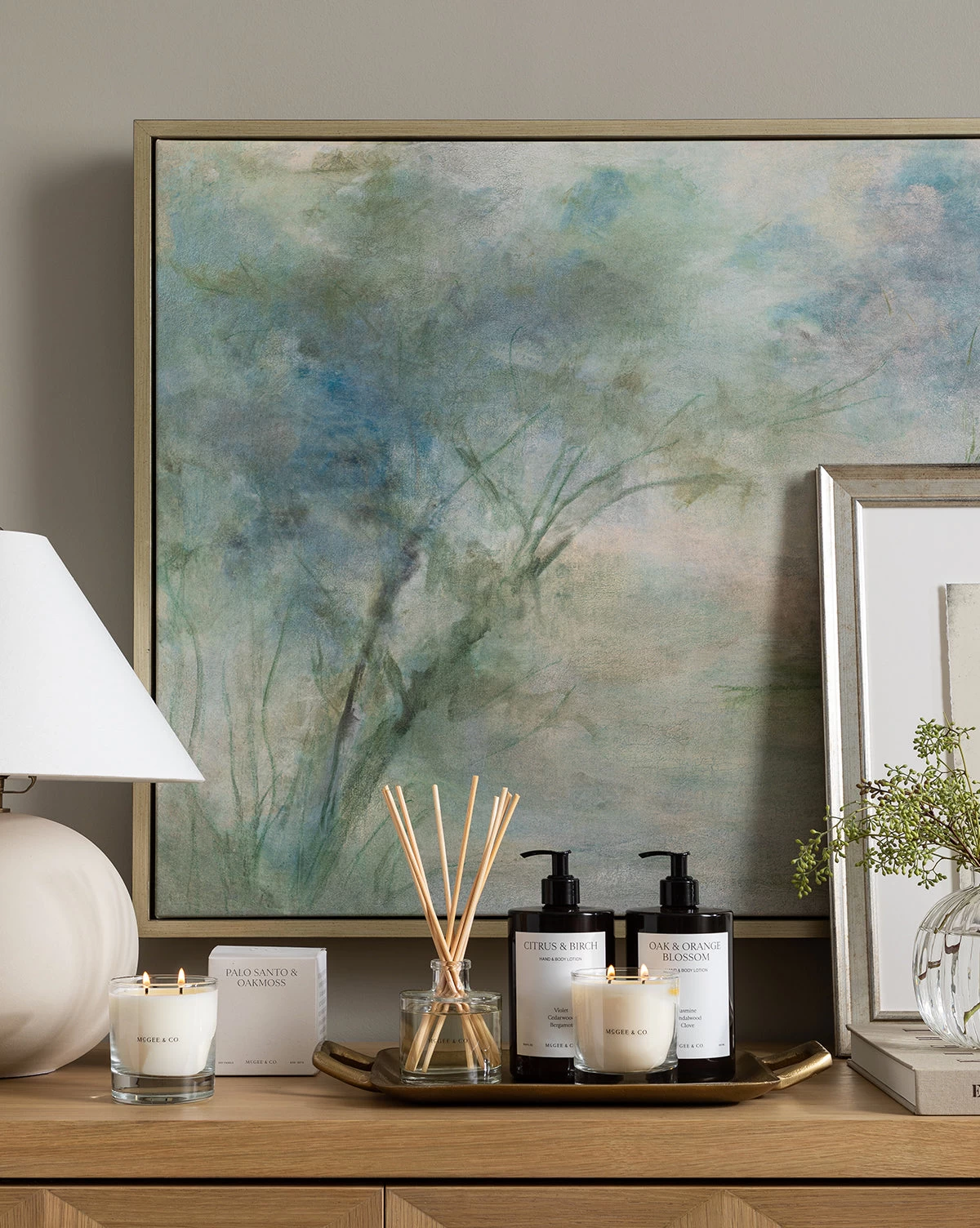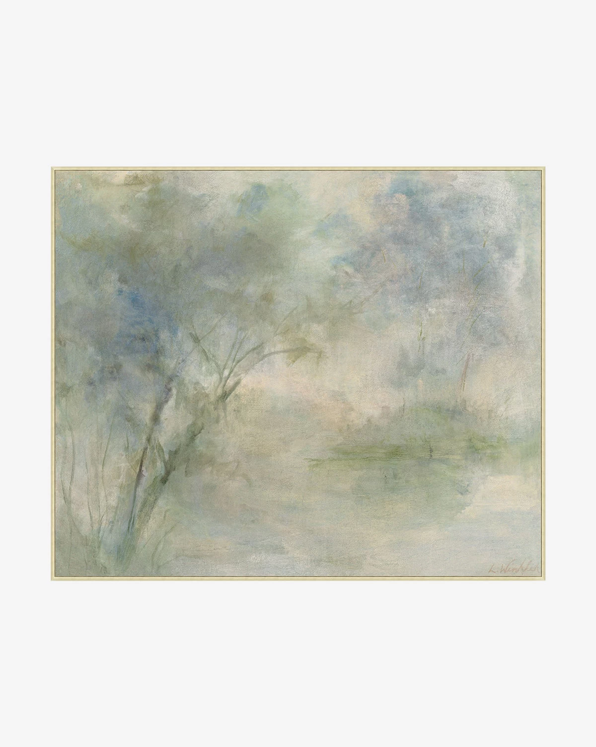Fading is a giclee print on canvas in a cool palette of greens and blues. Its subtle forest scene is intriguing and peaceful, lending a soft touch to your space. Framed in silver-finished wood, the artist-enhanced piece brings gallery quality materials and presentation to your space. Â