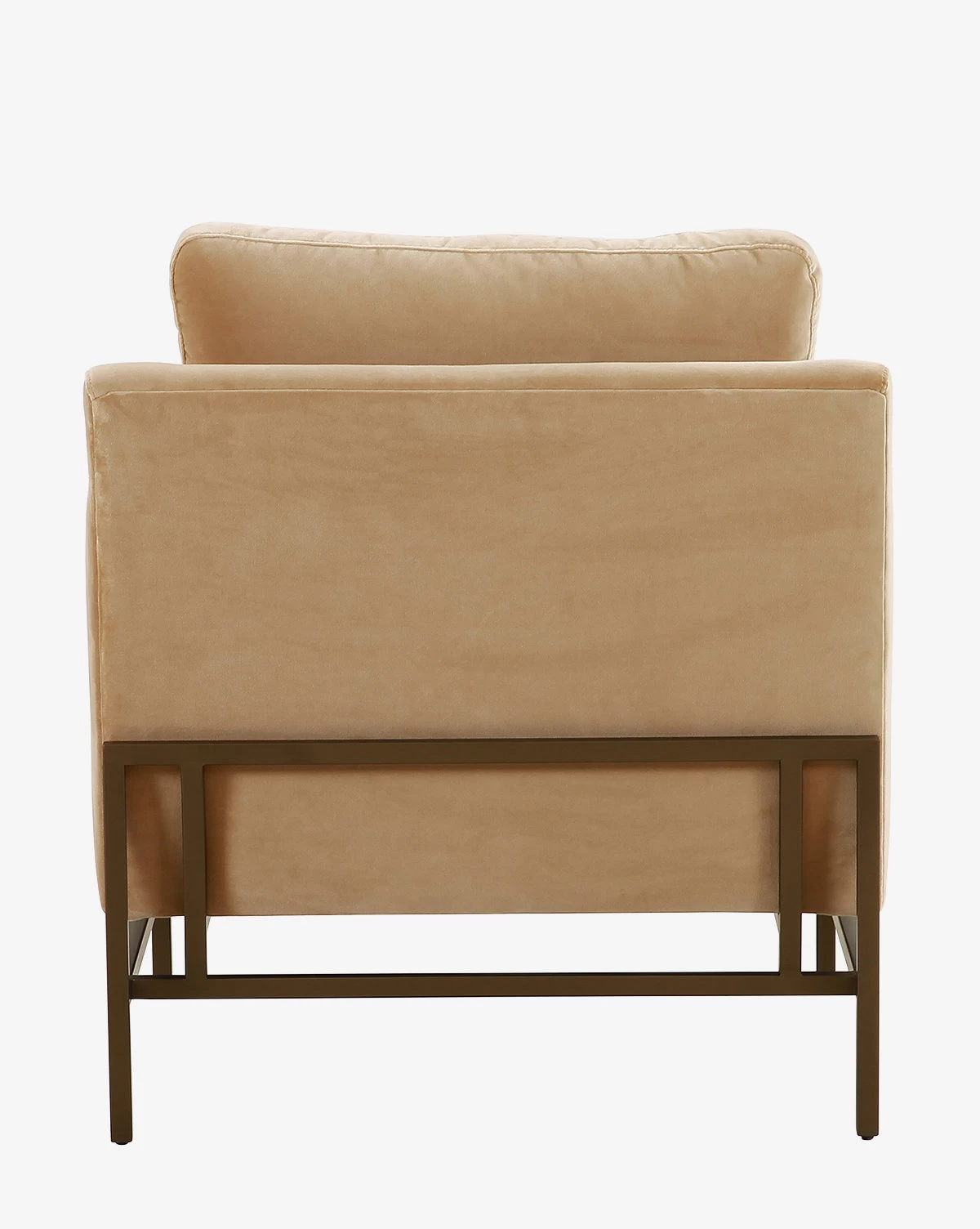 Comfort meets luxury in the modern silhouette of the Fayette Lounge Chair. From the camel hue to the iron frame, this chair is a lesson in both contrast and texture, easily elevating your living space.