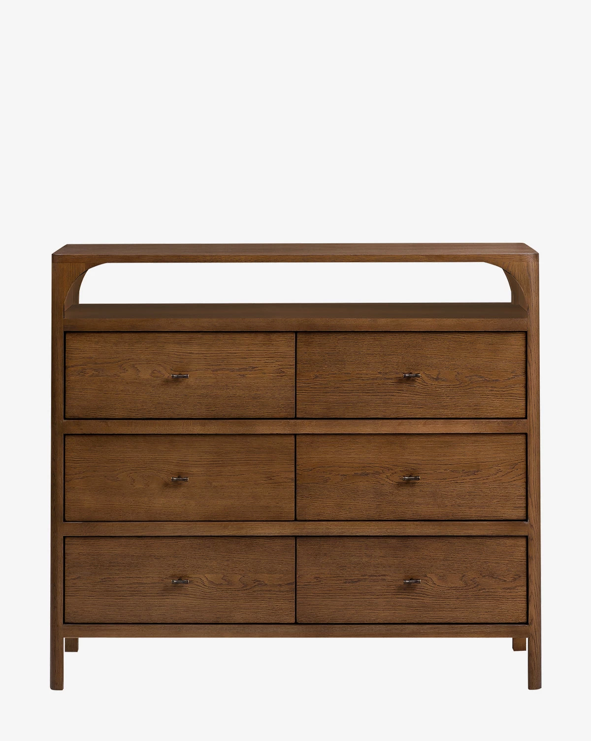 A traditionally inspired design with distinct details brings a modern-meets-antique feel to bedroom styling with the Geneva Dresser. Six drawers provide practical storage while the open shelf lends dimension and sophistication to your space.