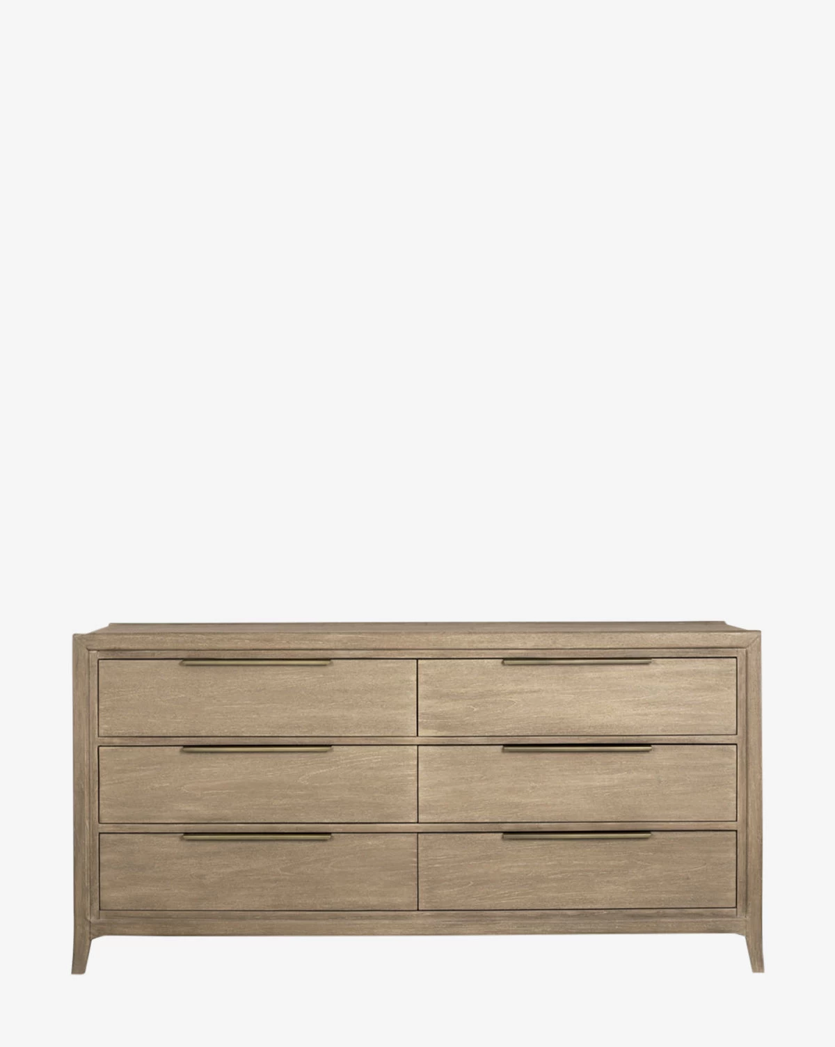 With a subtle warmth from reclaimed teak wood, the Genevieve Dresser brings natural details to bedroom decor. In a straightforward design, the six drawers of the dresser are designed to blend in with the whole, accented by sleek bronze-finished handles.