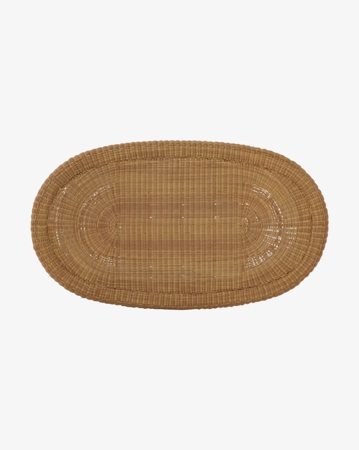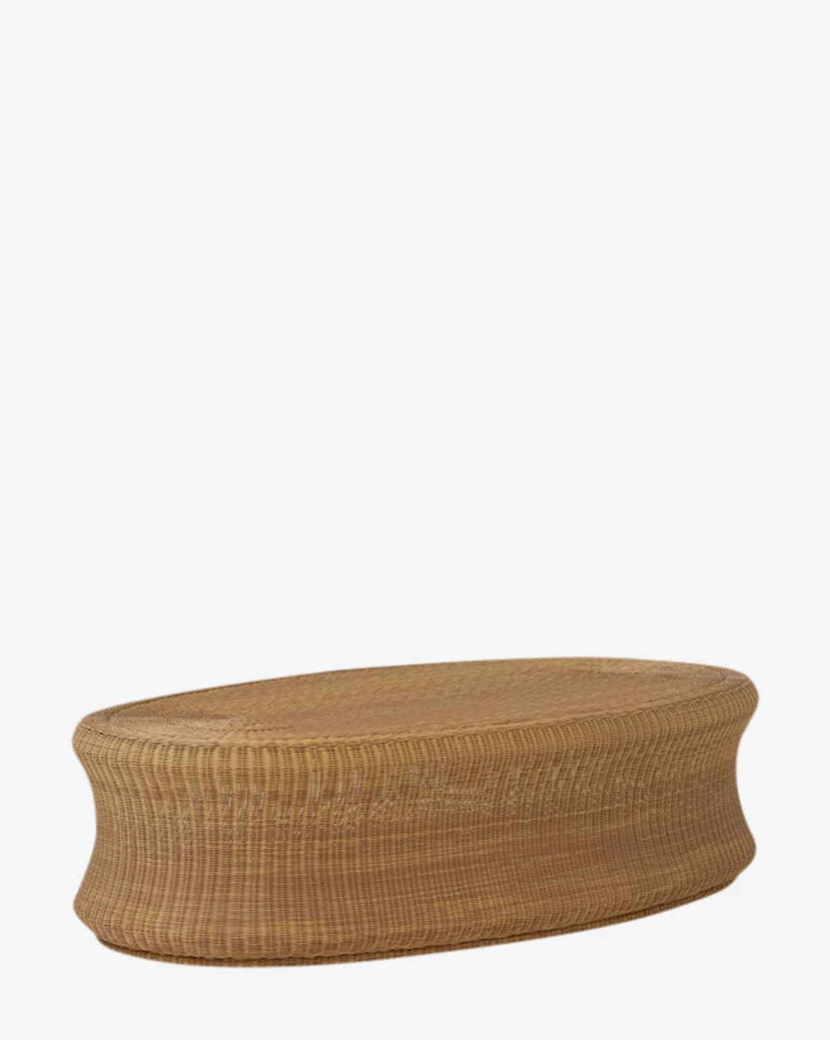 The Goldfield Coffee Table is crafted from faux wicker around a metal frame with a light honey finish creating an organic look and feel. In a soft rounded shape that highlights the intricate detail of its construction, this coffee table effortlessly anchors your outdoor furniture.