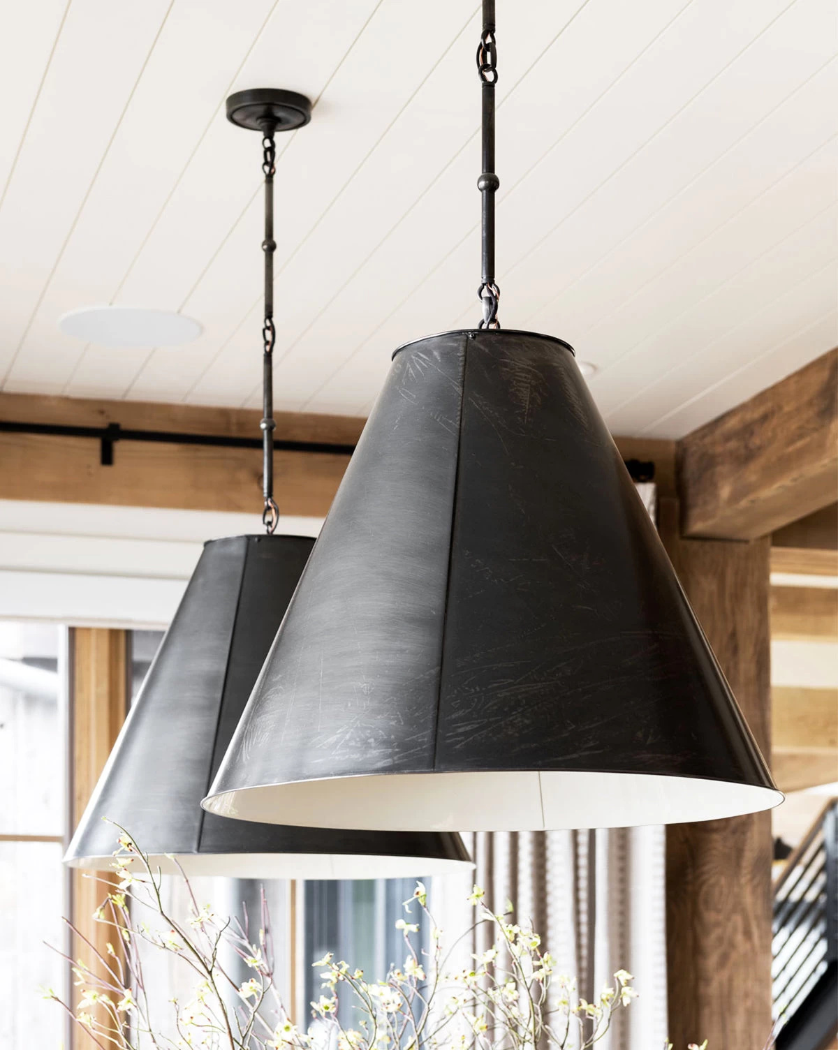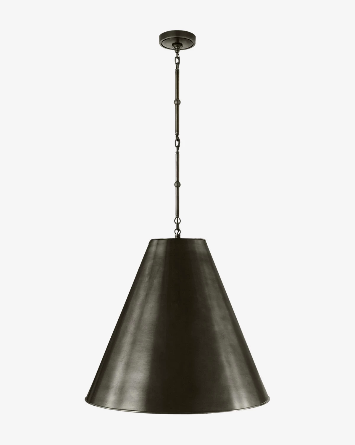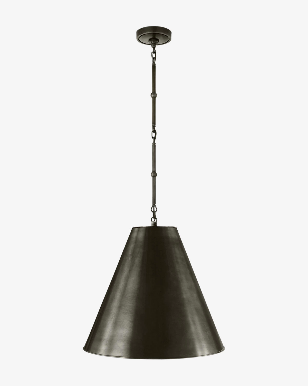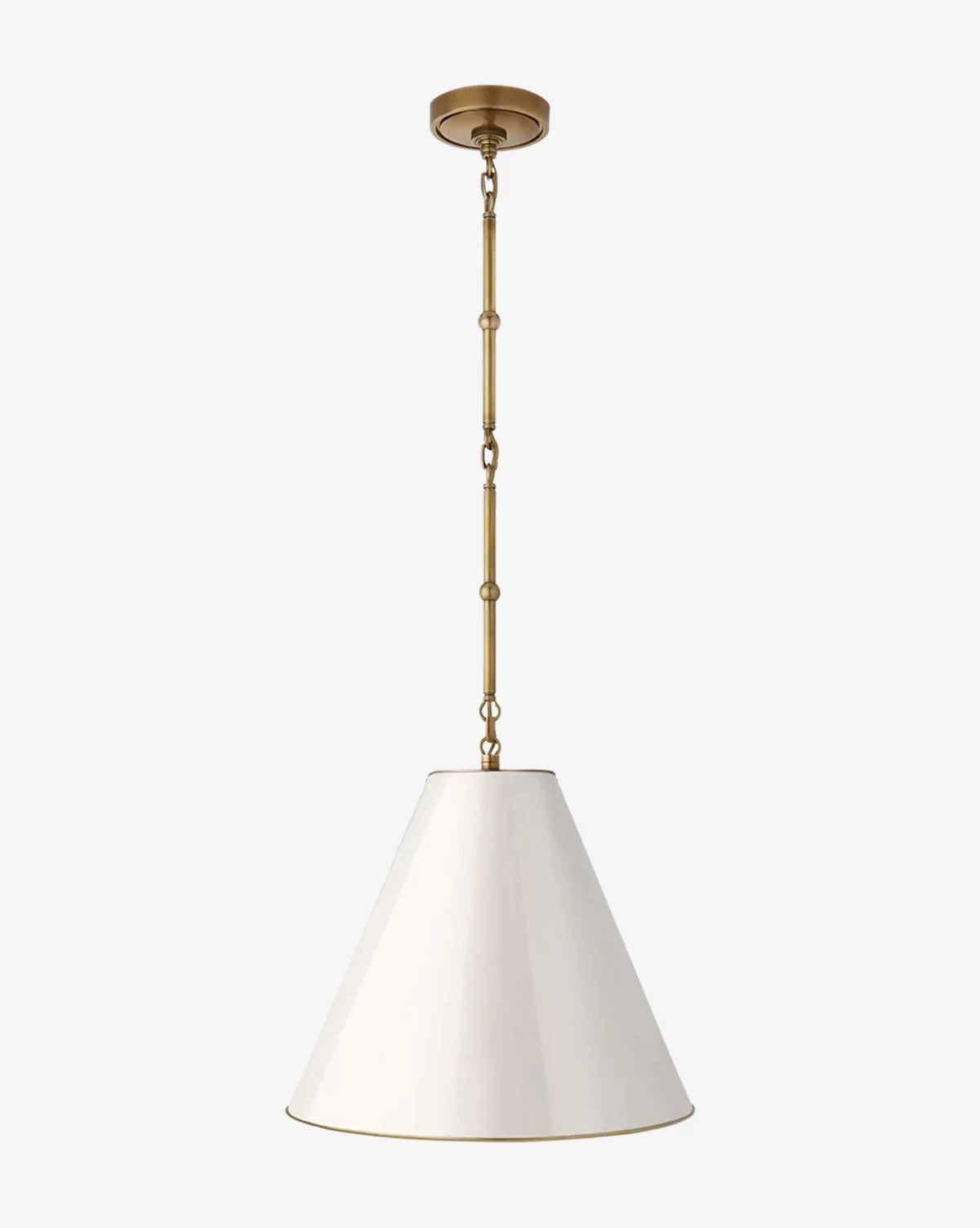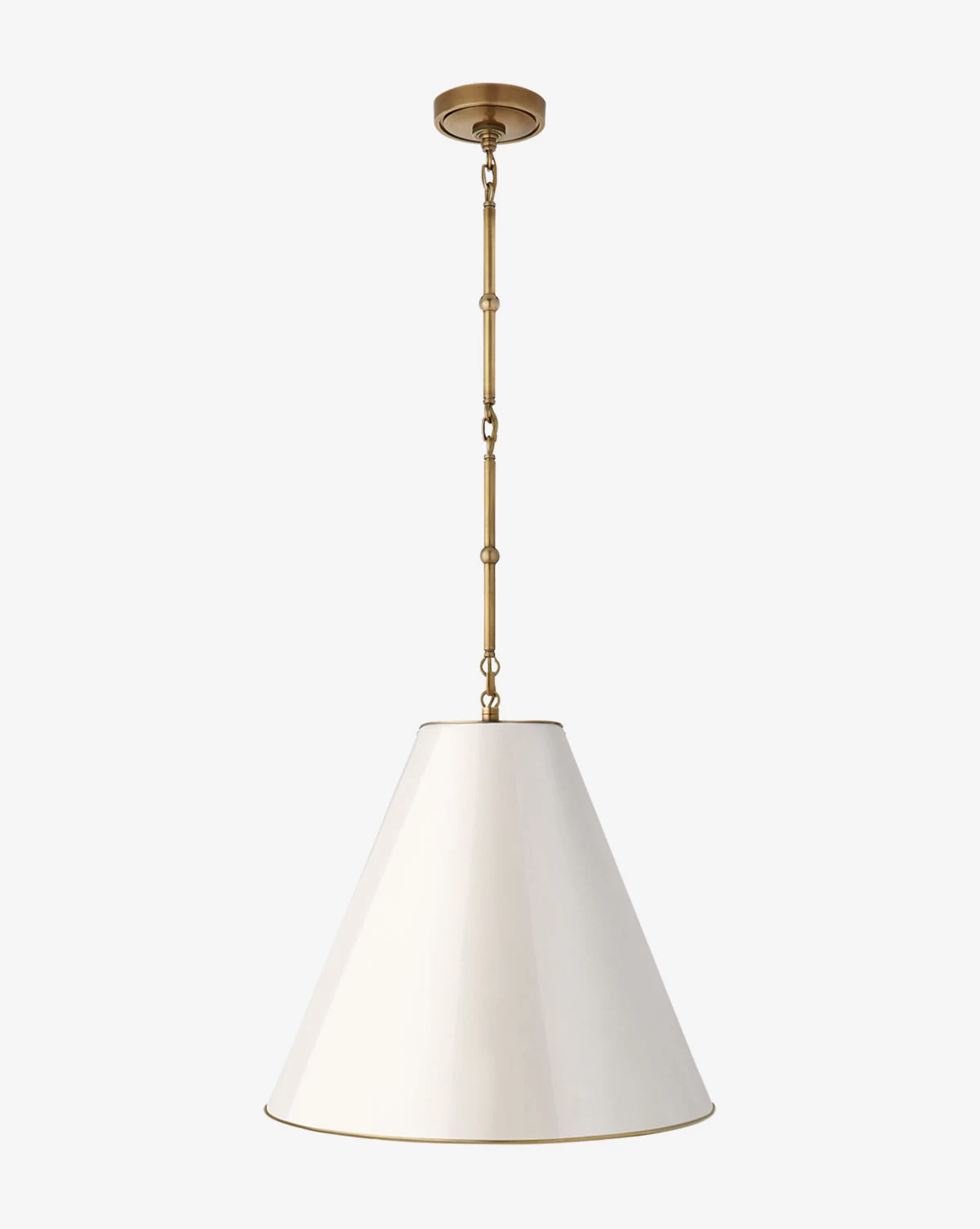 With its modern shade and five brilliant finishes, the Goodman Pendant makes it easy to update home lighting. Bring cool tones to your space with the antique nickel finish, or add warmth with its hand-rubbed antique brass finish.