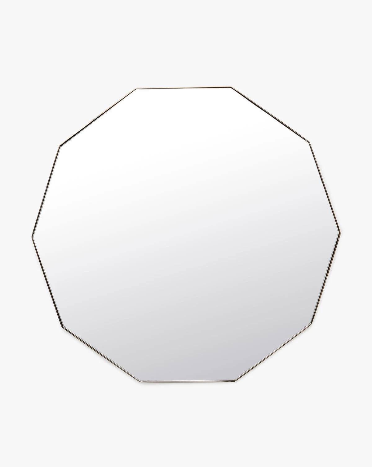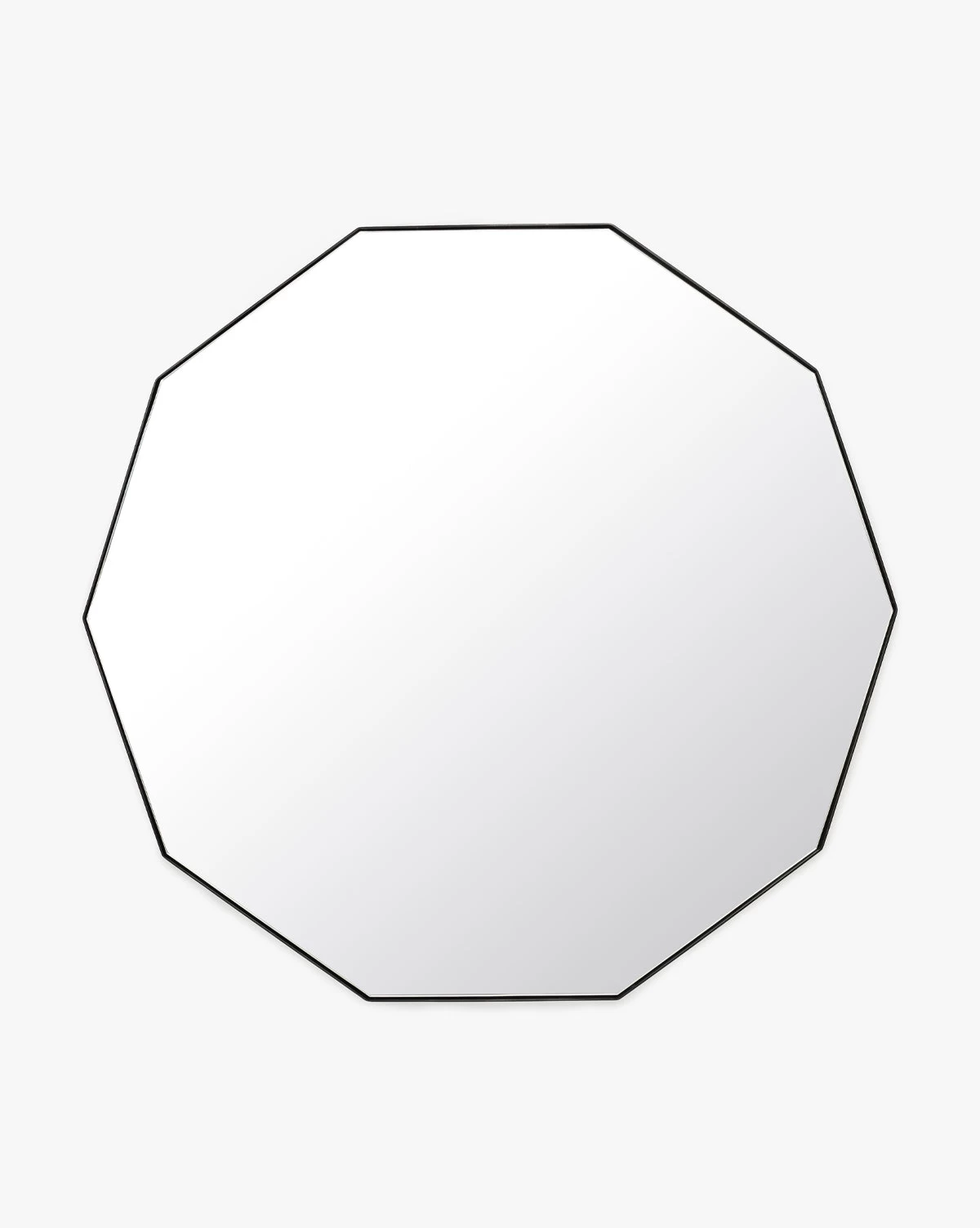 Shapely and modern, our Hawley Decagon Mirror makes a subtle statement in any room. An inset mirror with a burnished brass or black finish on its stainless steel border, this wall mirror creates beautiful dimension in your space.
