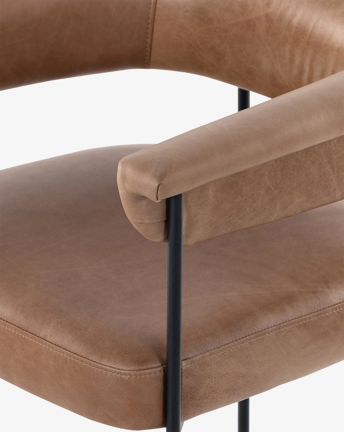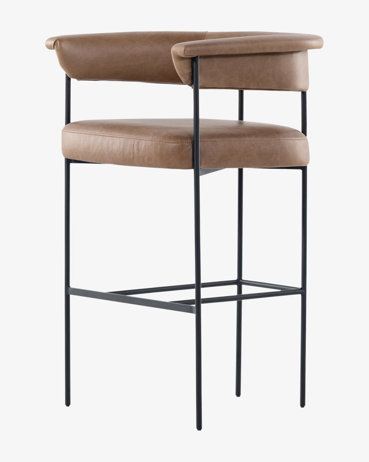 With tan top-grain leather and matte black-finished iron framing, the Irie Stool is stunning and slender. Its details are captivating, with a yoke back and elegant exterior fold. Styled at a bar or counter, the stool adds a distinctive and inviting presence to your space.