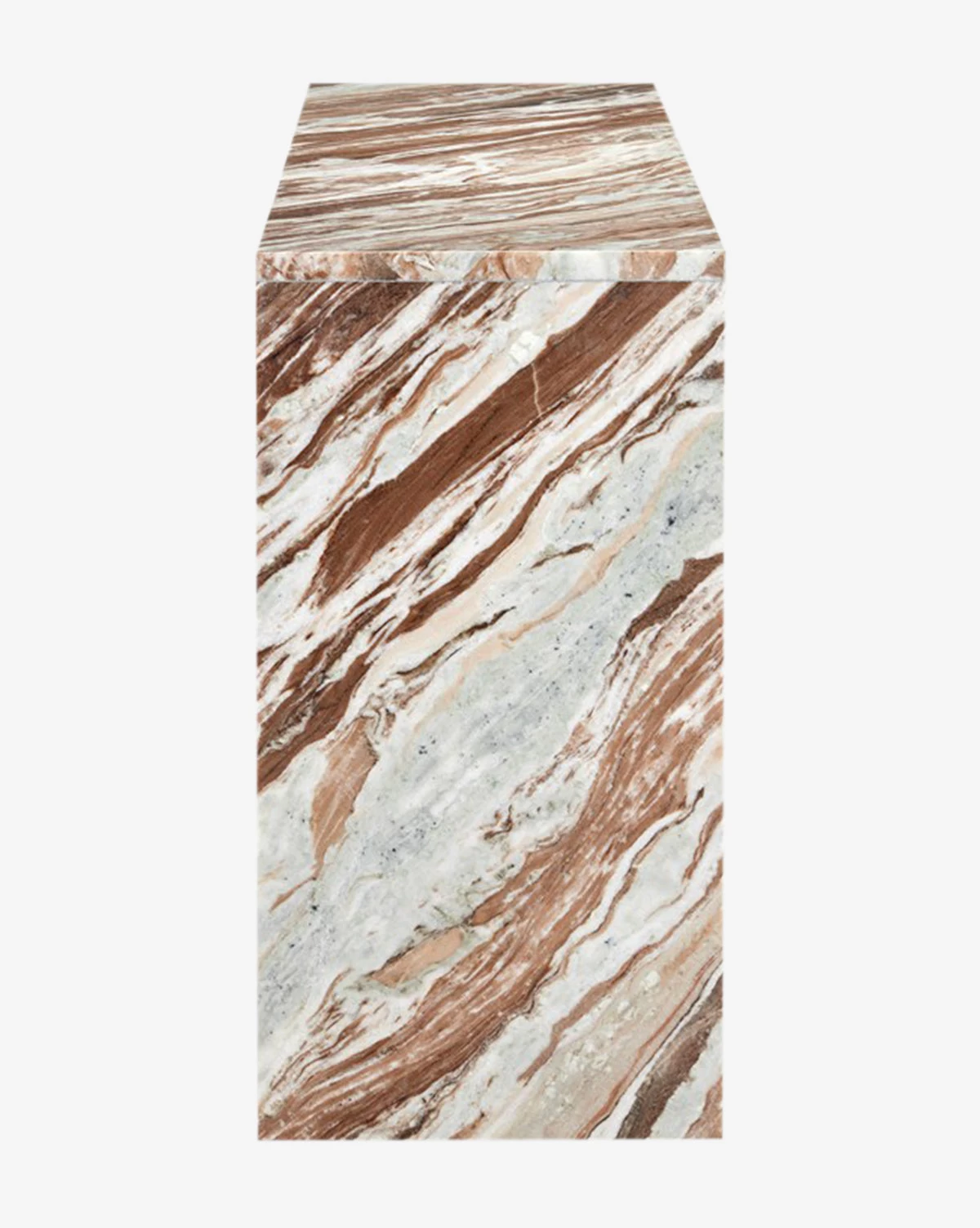 Sleek and geometric, the Jullia Console Table uses Toranto marble to blend traditional tones with modern design. The natural marbling of the table lends beautiful organic detail to your space, while the straightforward construction of the console table makes it a perfect piece for a transitional look.