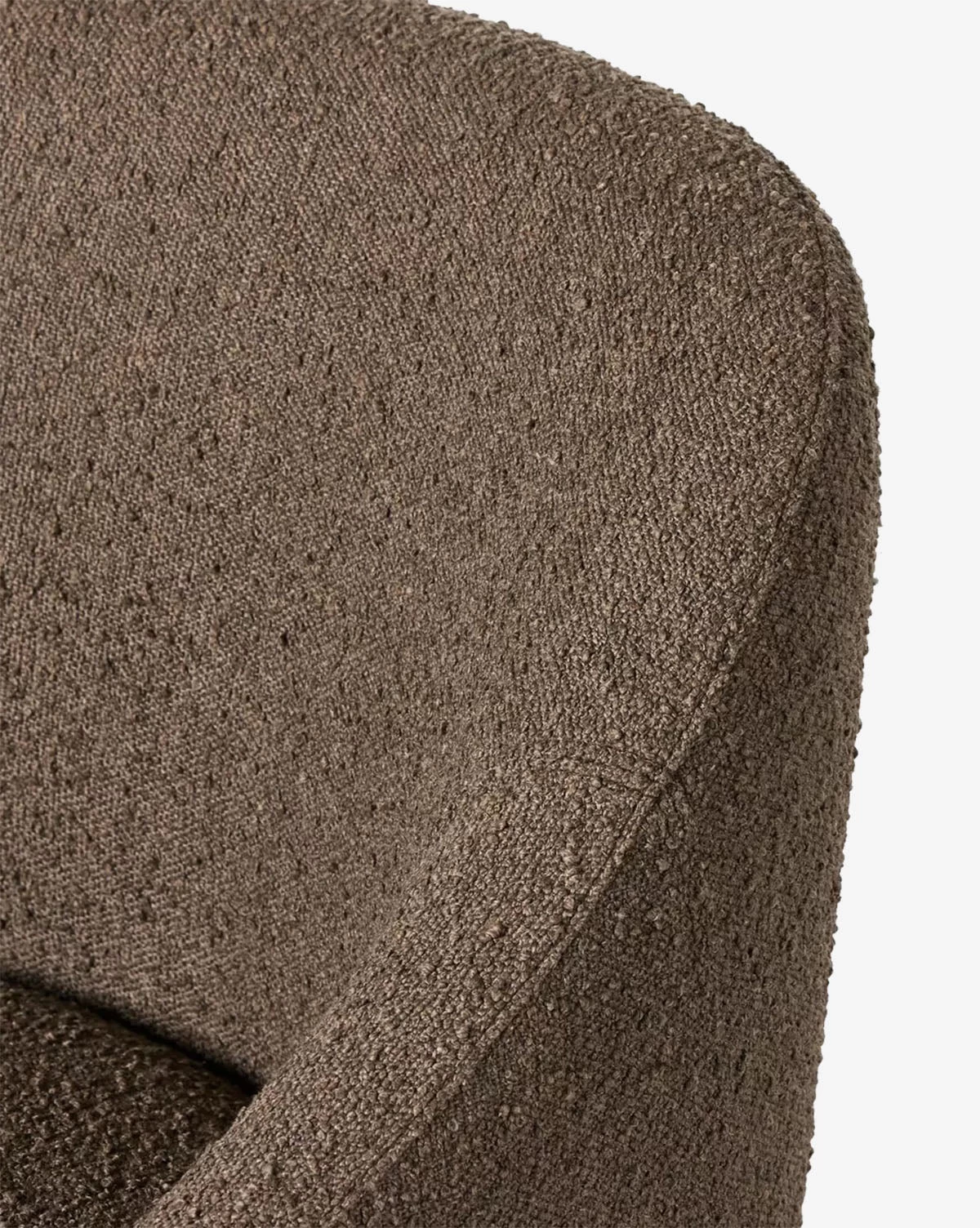 Shapely and inviting, the Lilou Dining Chair is upholstered in a dark, textural performance fabric. Its components are uniquely modern and scaled in a way that creates depth and dimension. Thoughtfully designed, the chair brings subtle texture to the dining room with its elements of refined comfort.