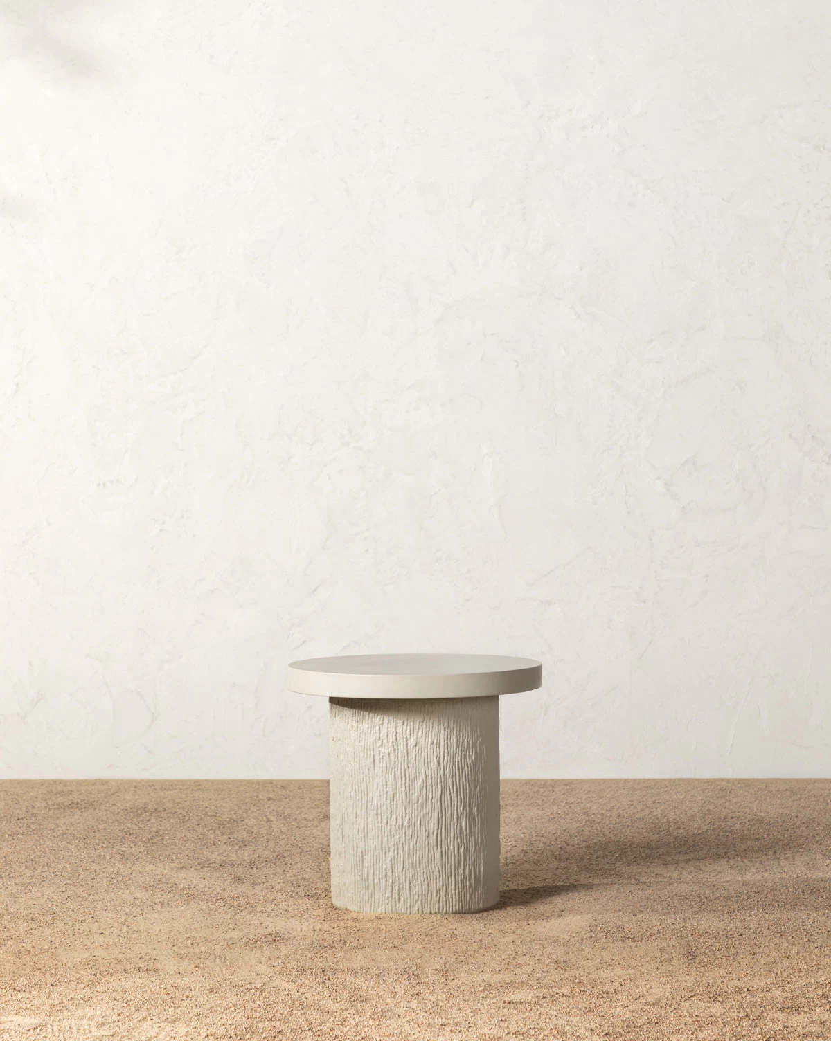 In a circular form with a textured cylindrical base, the Malcom Fiberstone Side Table is contemporary and geometric. This simple yet modern design is made from cast fibercement in a gray finish, making it easy to style with your current outdoor decor.