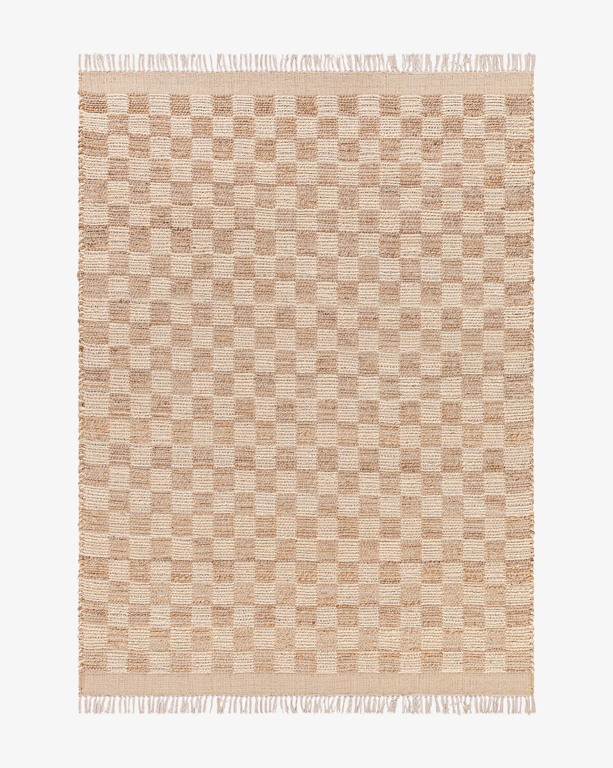 Made from 100% jute, the Manette Handwoven Rug is both playful and organic. With a neutral palette, the checkered motif of the rug is an unexpected complement to the natural materials of the intricately hand-woven rug.Â