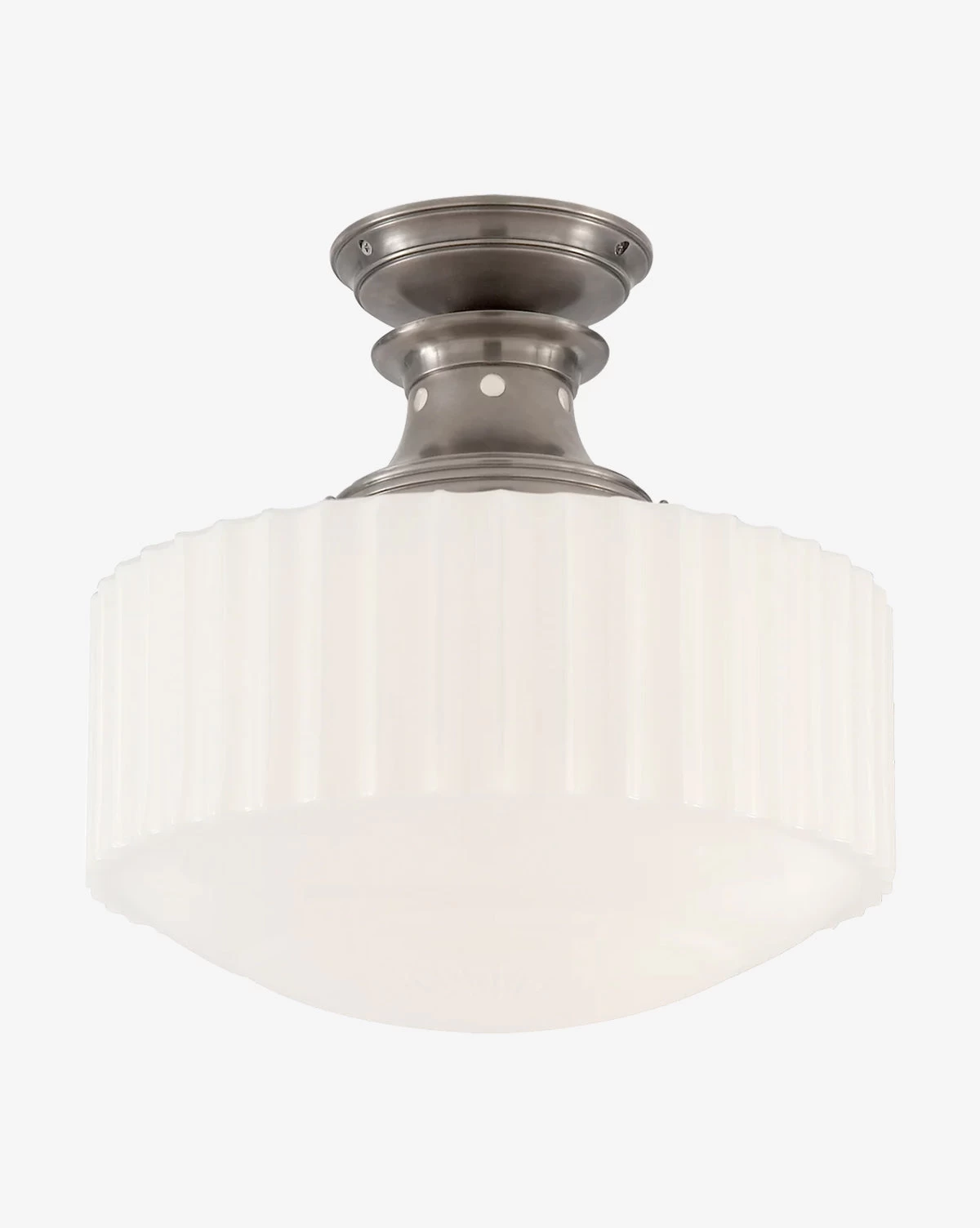 Traditional in style, the Milton Road Flush Mount gets a contemporary update with fluted details along its white glass shade. Four different finishes allow this light fixture to blend seamlessly into your home design.