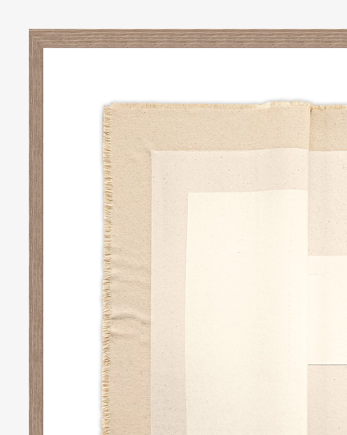 With three-dimensional texture, Mind Division III is a hand painting on fabric. Its frayed edges and folded element bring dimension and detail wherever it is placed. Framed in natural wood, museum-quality materials elevate your decor.   Â
