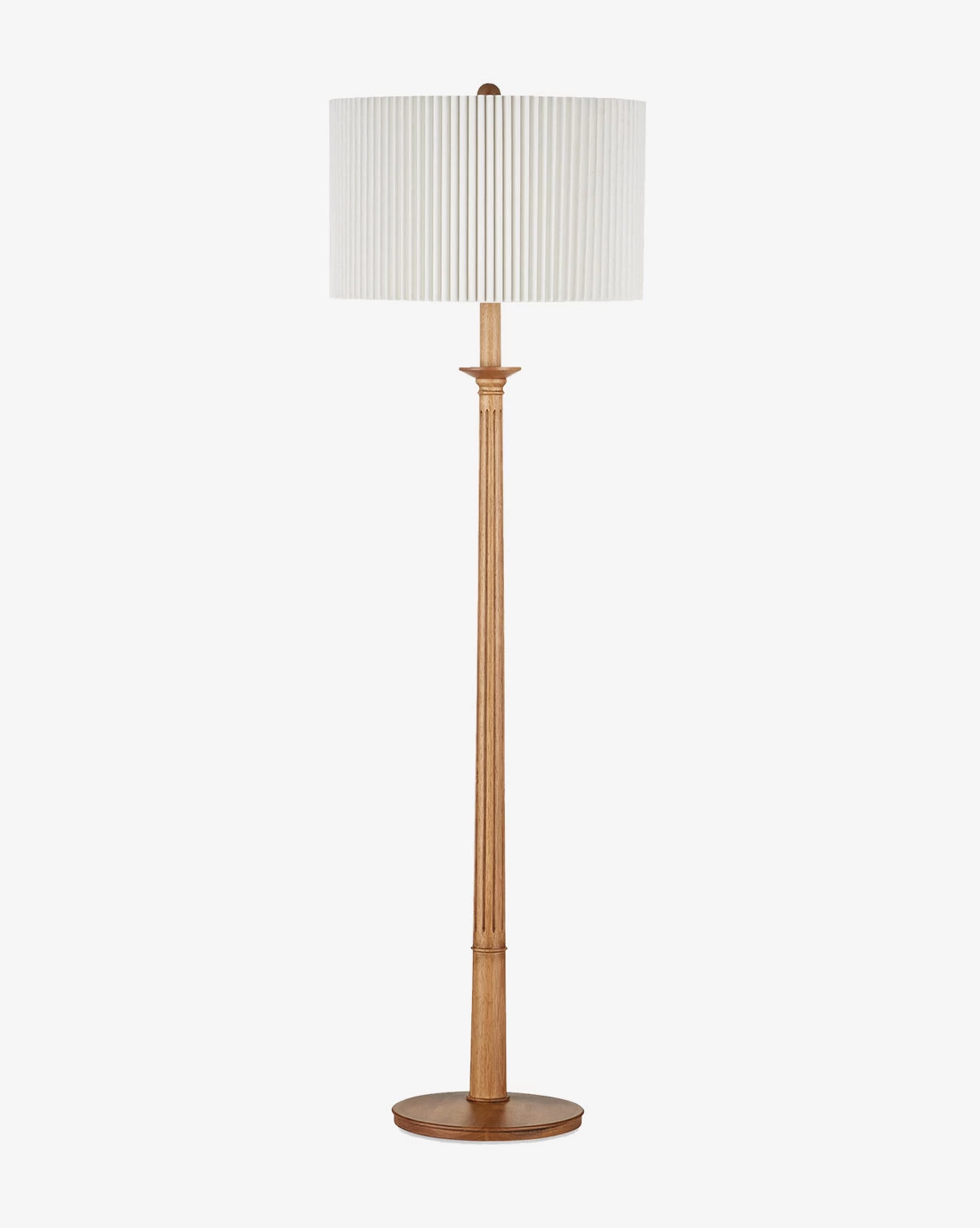 With a traditional design, the details of the Mitford Floor Lamp are what make it special. The natural wood base complements the bone linen shade, seamlessly elevating any room in your home.
