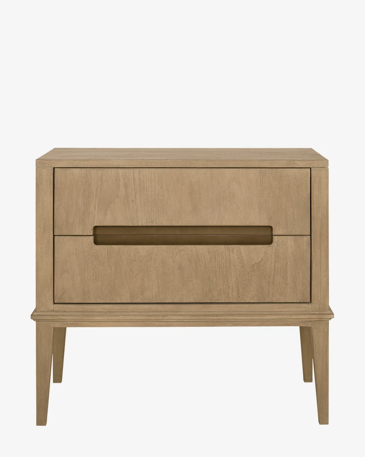 A simplified and elevated version of a classic nightstand, the Morado Nightstand brings a mid-century modern feel to the space. Its self-closing drawers and teakwood construction speak to its elegance, giving an elevated quality to your bedroom.