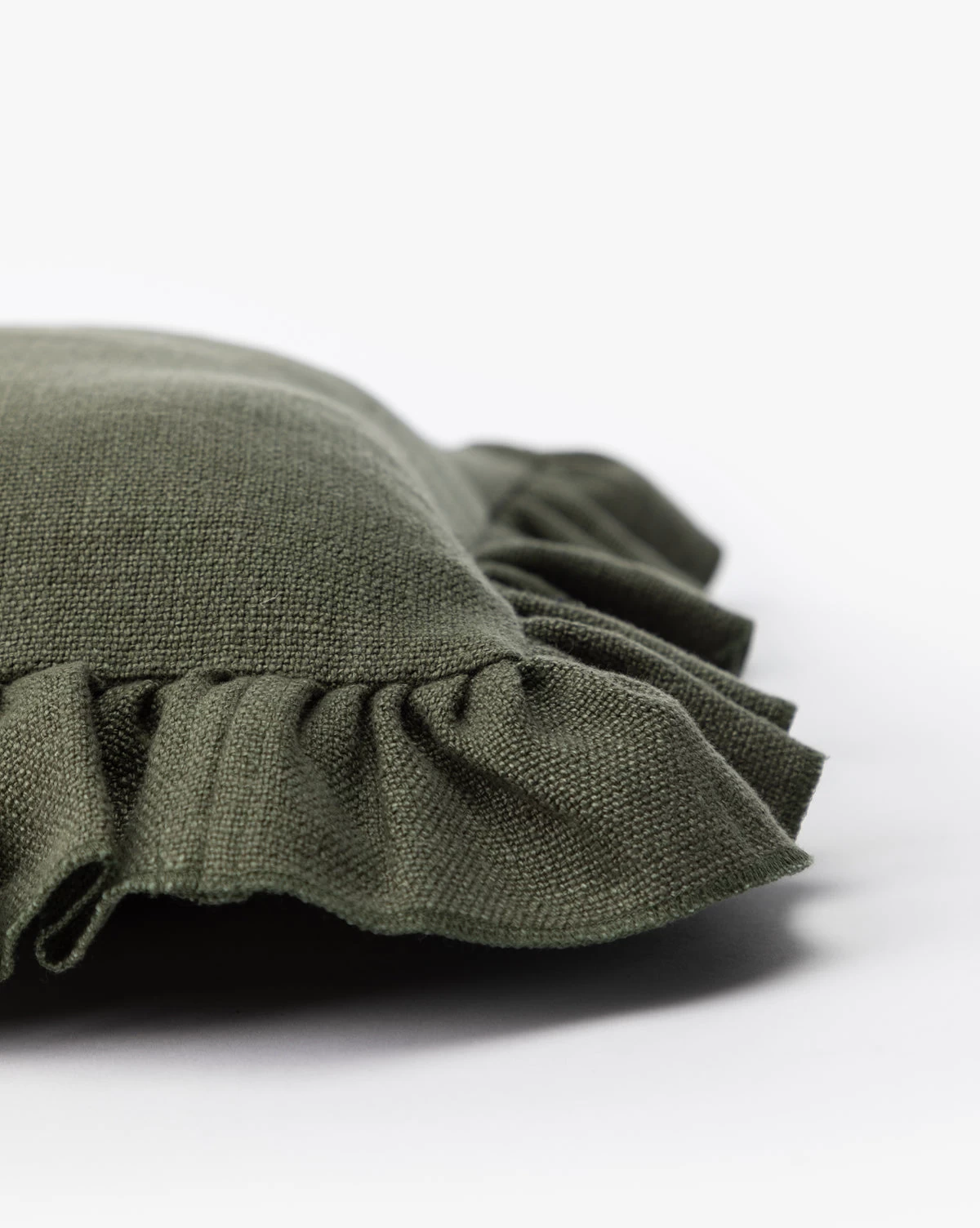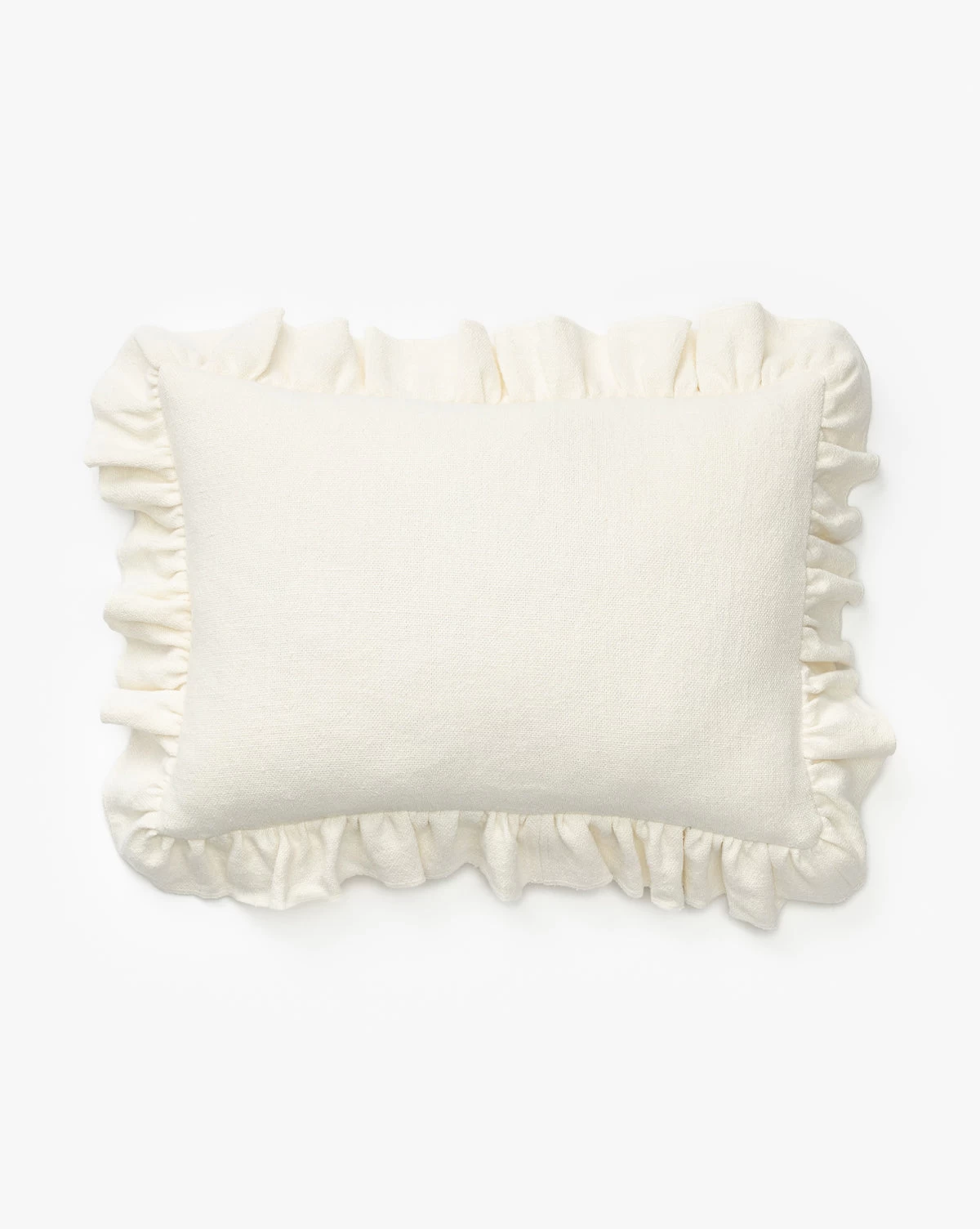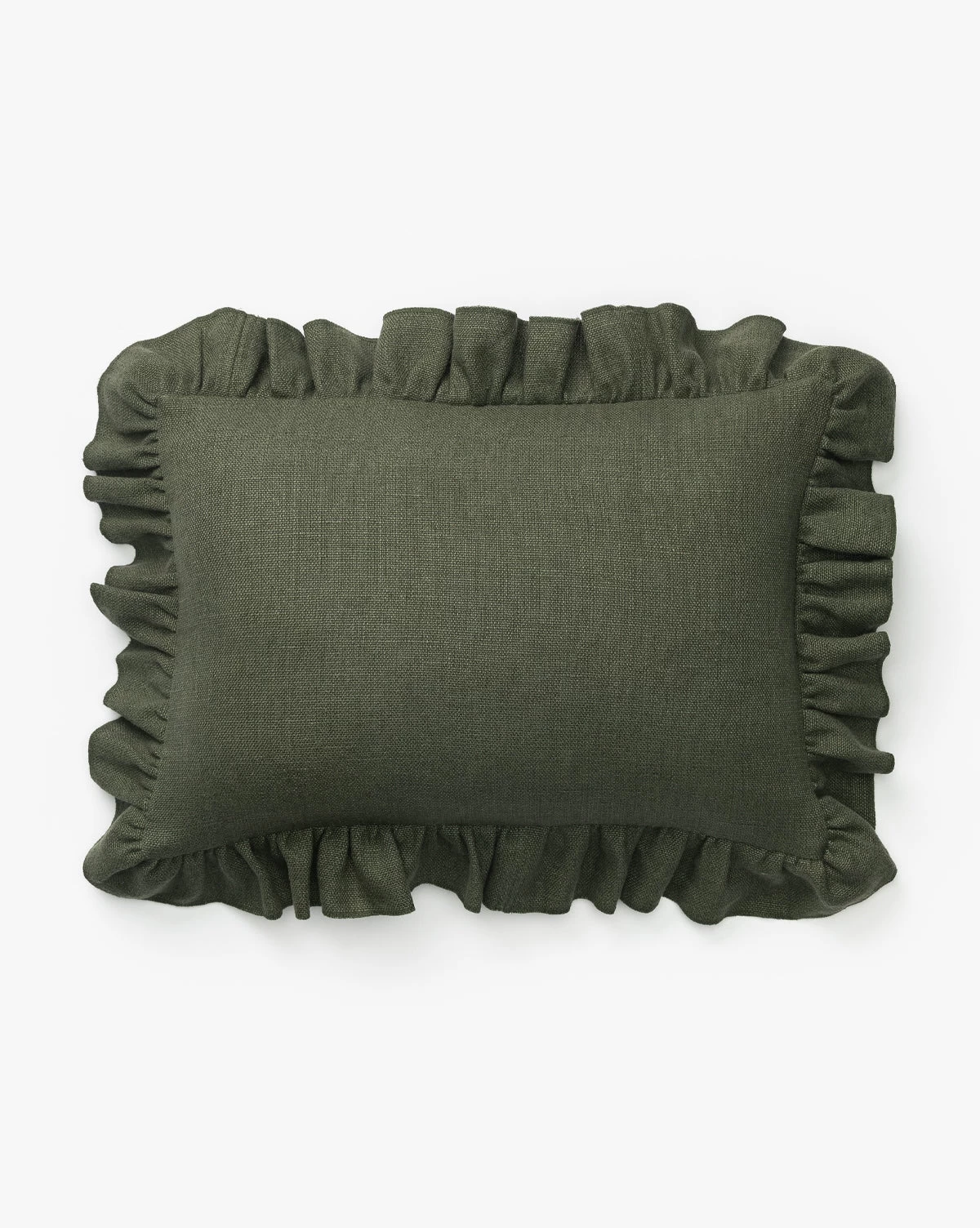 A playful take on throw pillows, the Mordechai Pillow Cover features bold ruffles on its edges. Made from 100% linen, the pillow is refined yet soft, and its solid hue lends itself to layering in textile vignettes.