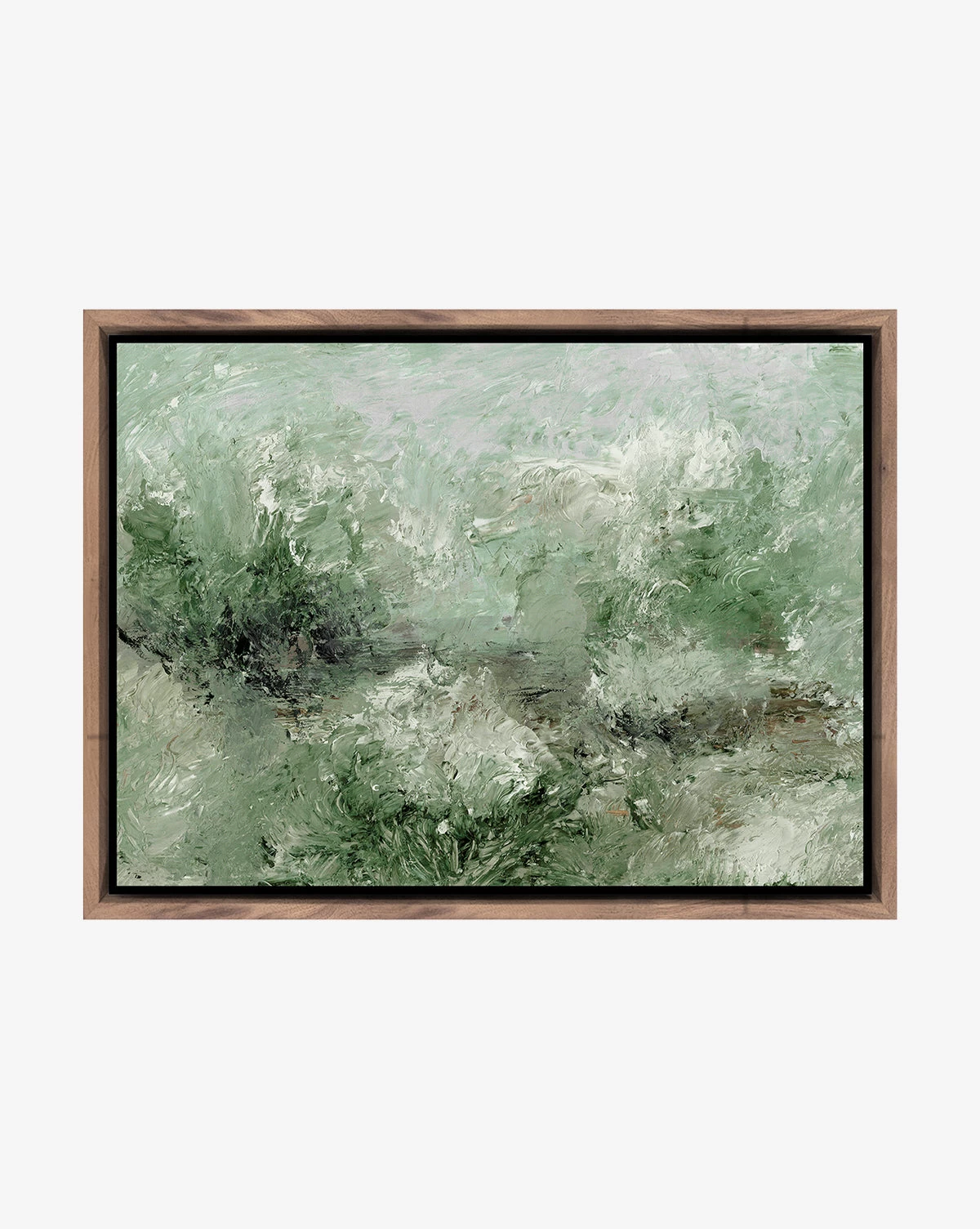 A textural and abstract landscape, Morning Cottage tells a stunning story. With cool and earthy tones, this piece speaks to the charms of rural life and adds eye-catching beauty to your gallery walls.