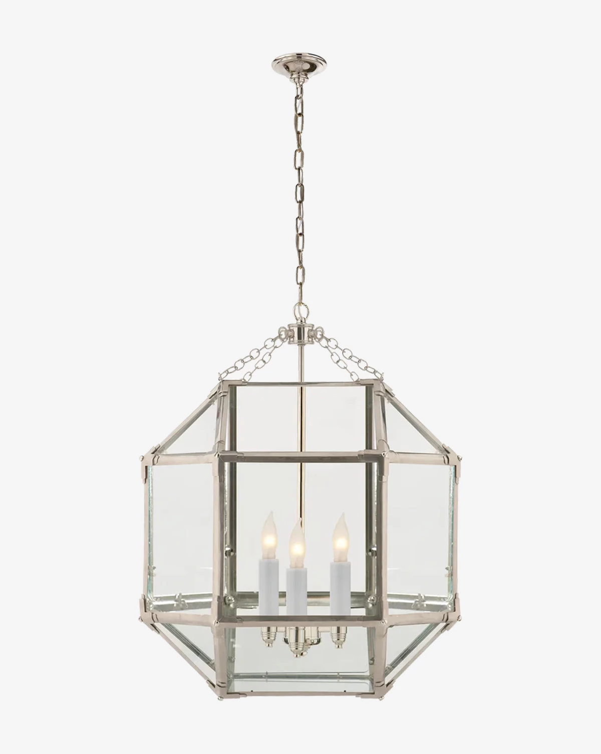 Our oversized Morris Lantern is the perfect statement for any space! This pendant light features iron edges and glass panels creating the quintessential combination of texture and shine. Update your lighting design with this contemporary styled lantern.