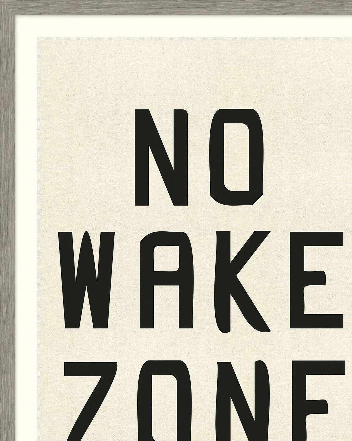 With the feel of a vintage camp flag, No Wake Zone brings power and simplicity to your decor. The giclee print on raw canvas has frayed edges and is mounted on a mat in a shadowbox, for extra textural display and a refined gallery feel.  Â