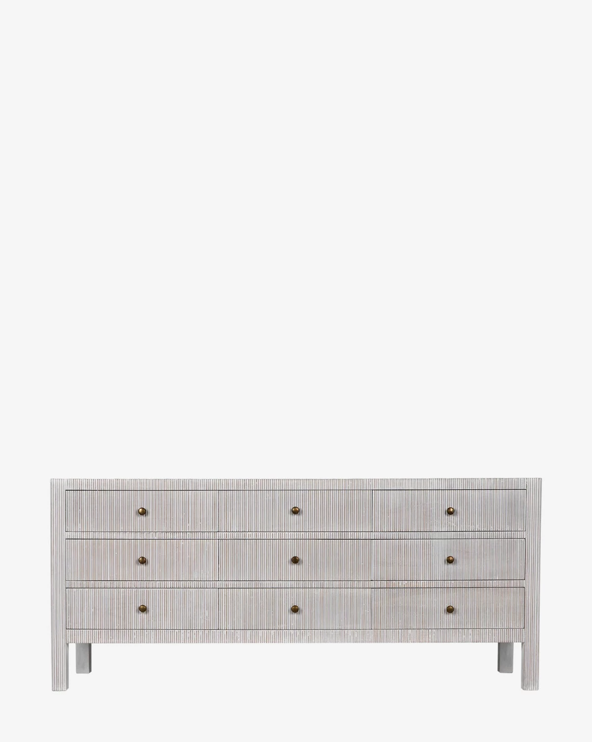 With an airy presence, the Aldea 9 Drawer Dresser is all about the details, from the delicately hand-carved reeding to the brass knobs. The white wash finish subtly reveals the golden wood tone of mahogany beneath it, lending both beauty and function to your space.