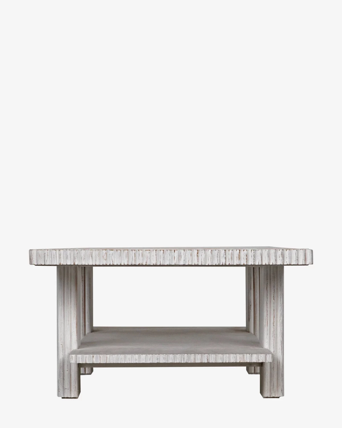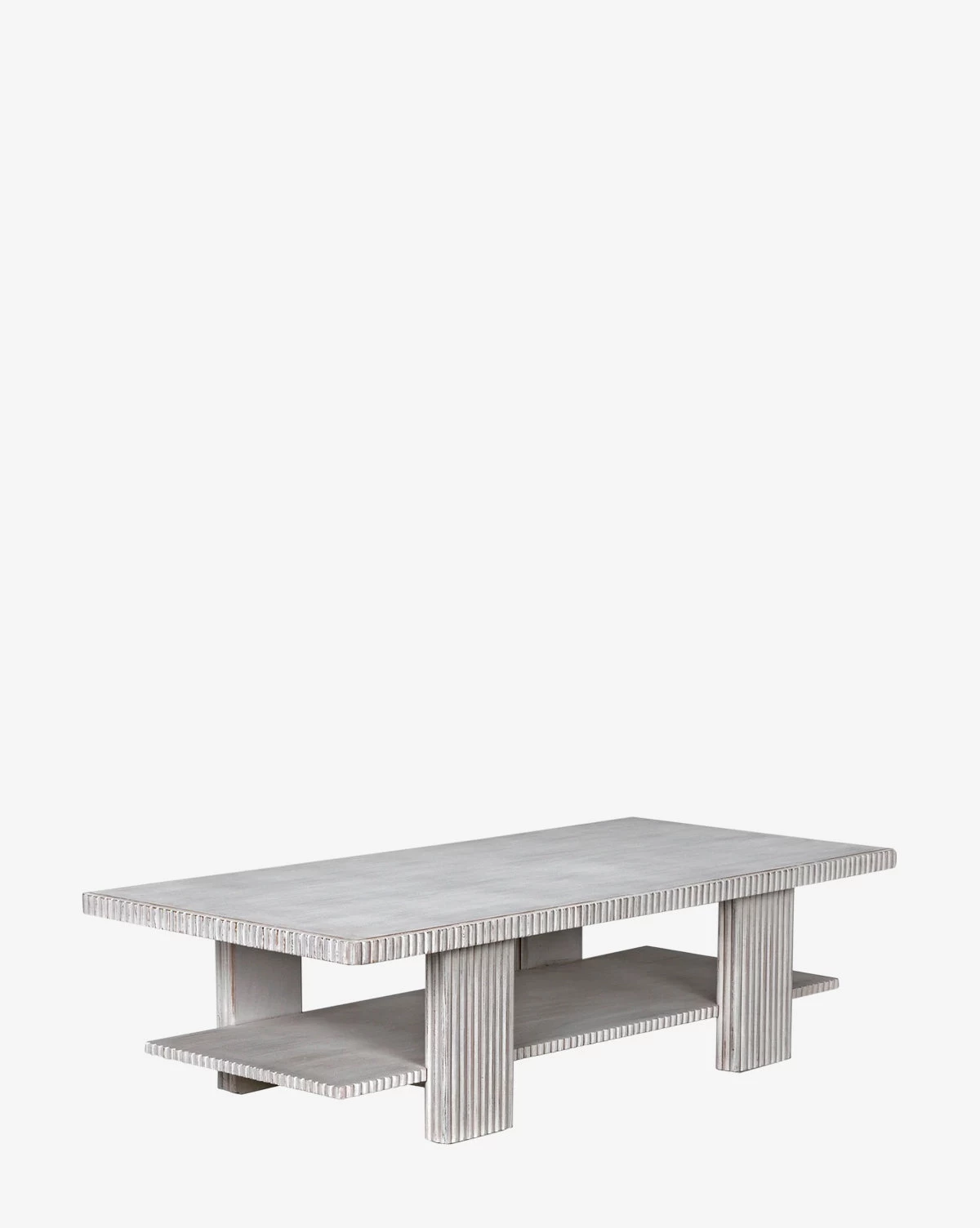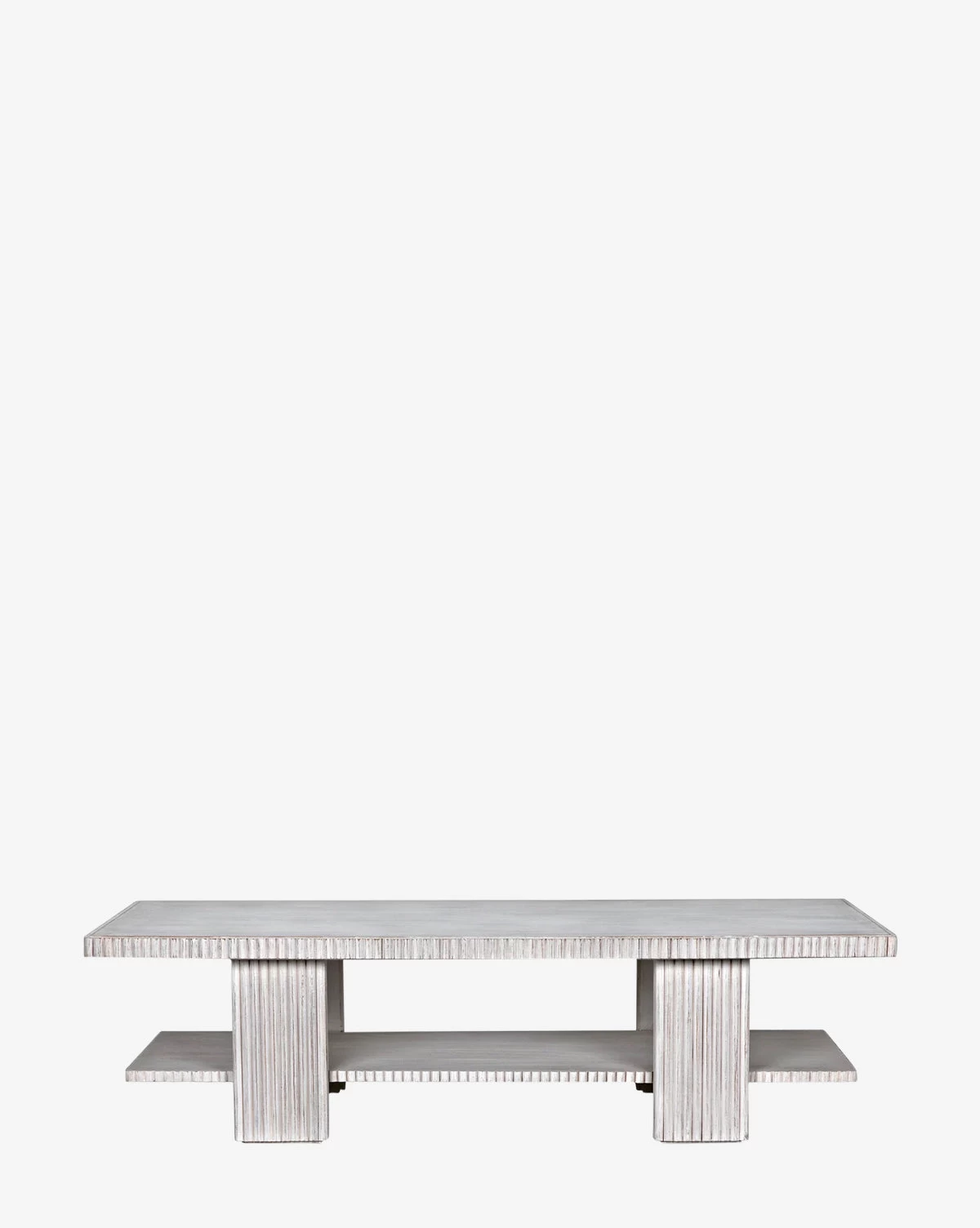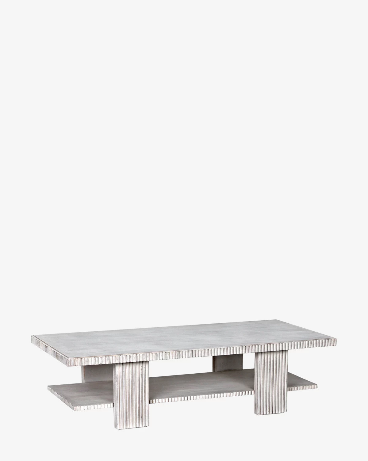 The wide frame of the Cantero Coffee Table is the perfect place to display decor and provide a practical surface in your living space. Made from mahogany with reeding along the sides, the white wash finish lends an airy visual texture.