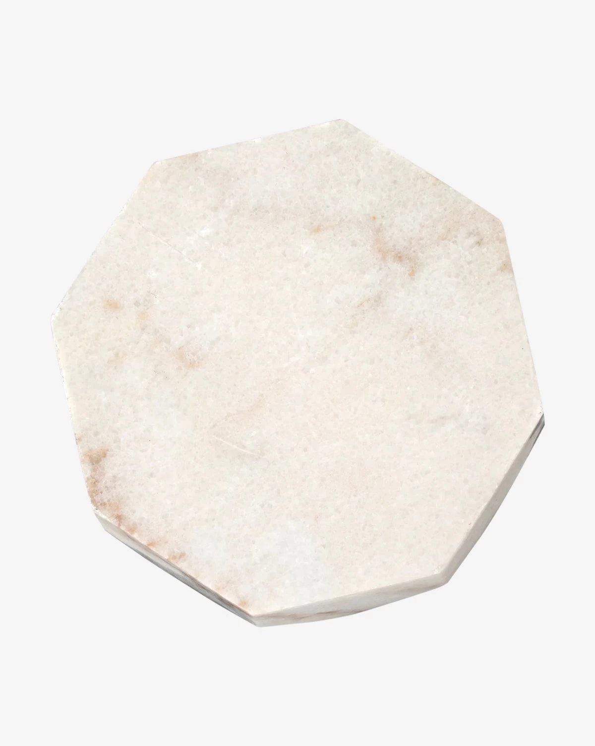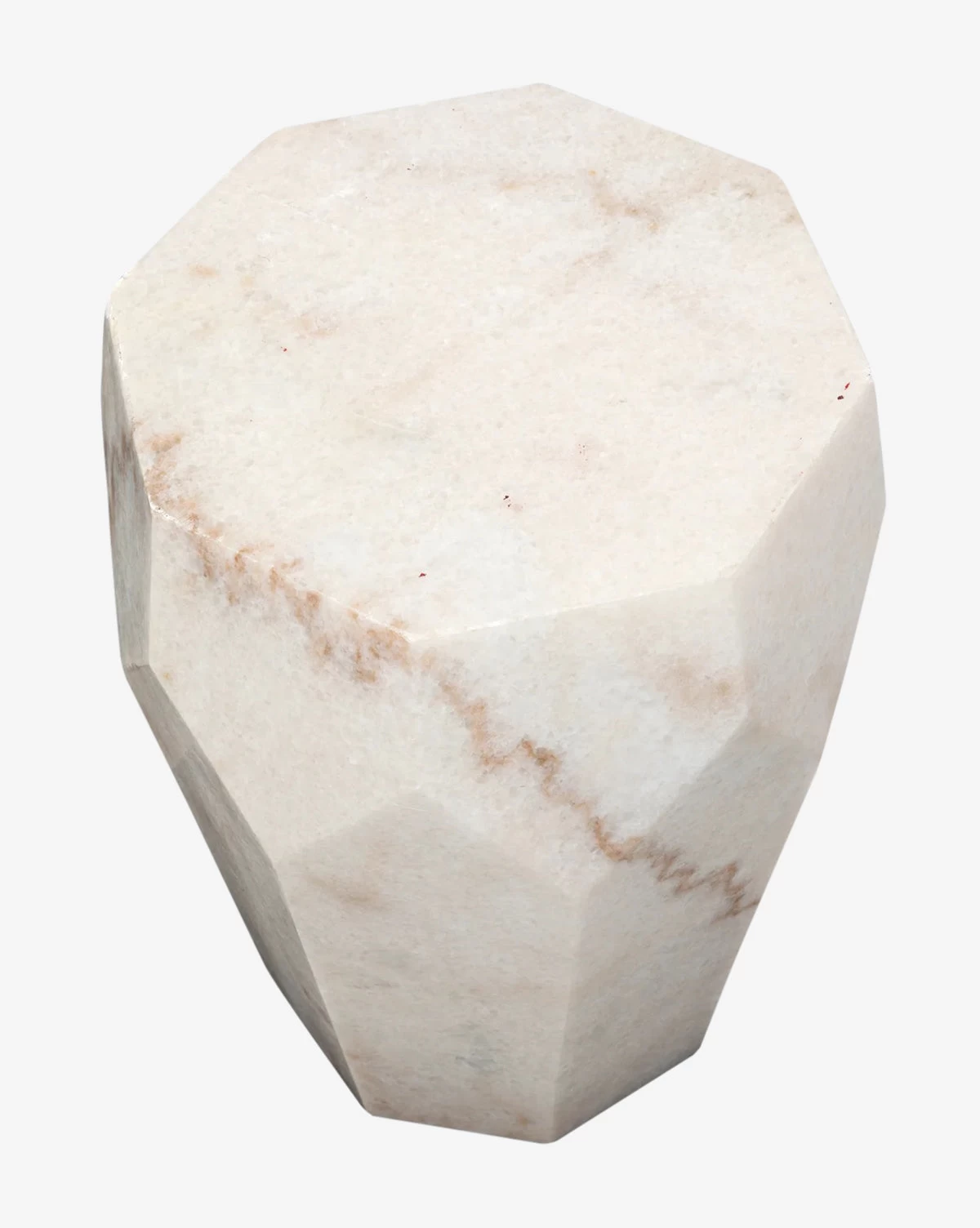 Subtle detail and tonal marbling take center stage in the tapered form of our Norris Side Table. Crafted from white stone, variations and imperfections bring beauty to its natural, organic design creating an entirely unique feel alongside your favorite sofa.
