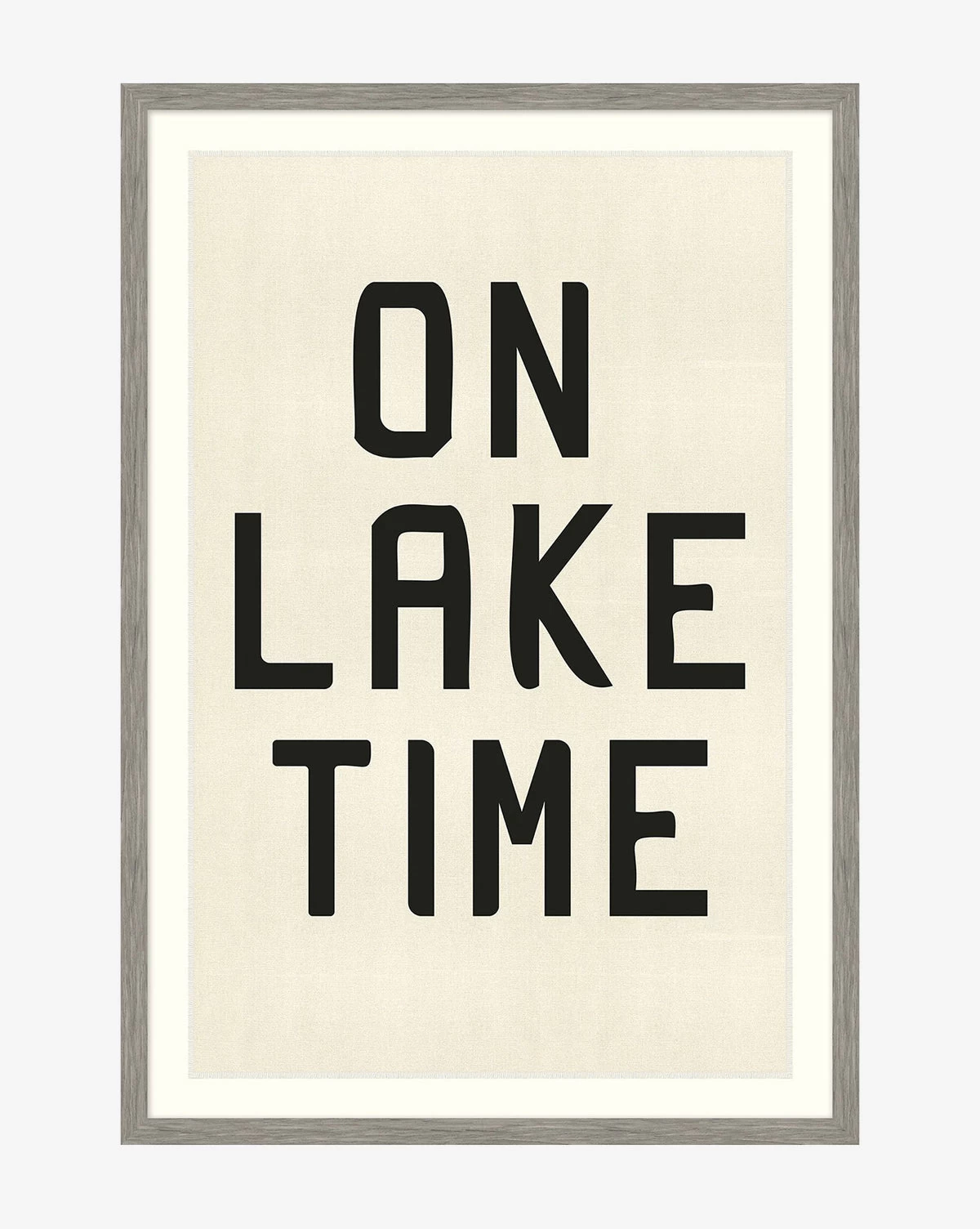 With the feel of a vintage camp flag, On Lake Time brings power and simplicity to your decor. The giclee print on raw canvas has frayed edges and is mounted on a mat in a shadowbox, for extra textural display and a refined gallery feel. Â